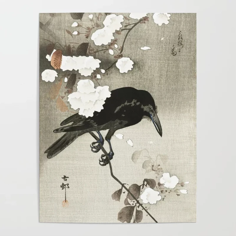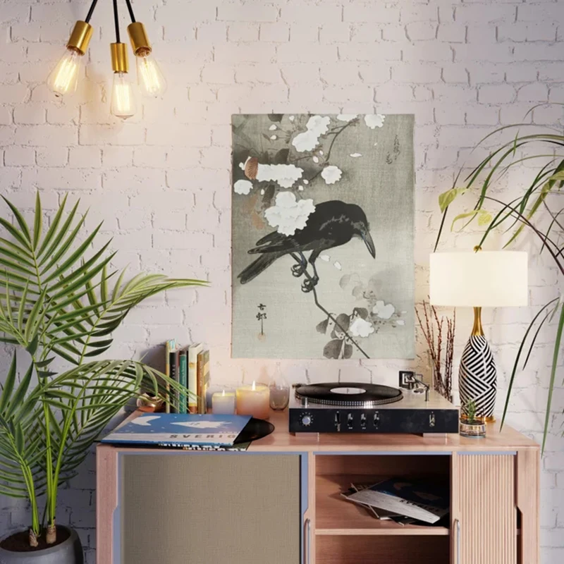 Домашний декор, HD принты, Ворон, Вишневое дерево, холст, живопись, настенное искусство, модульный японский винтажный постер для гостиной, рамки, картины