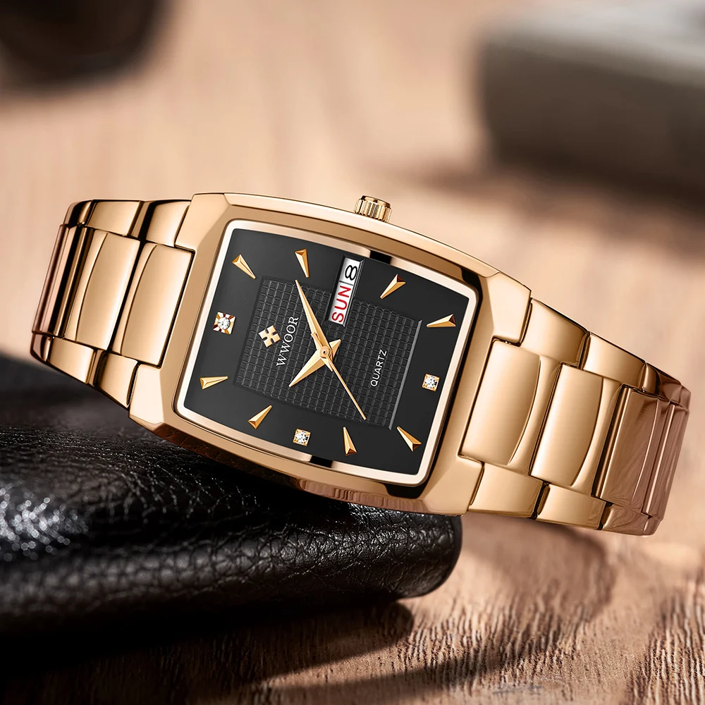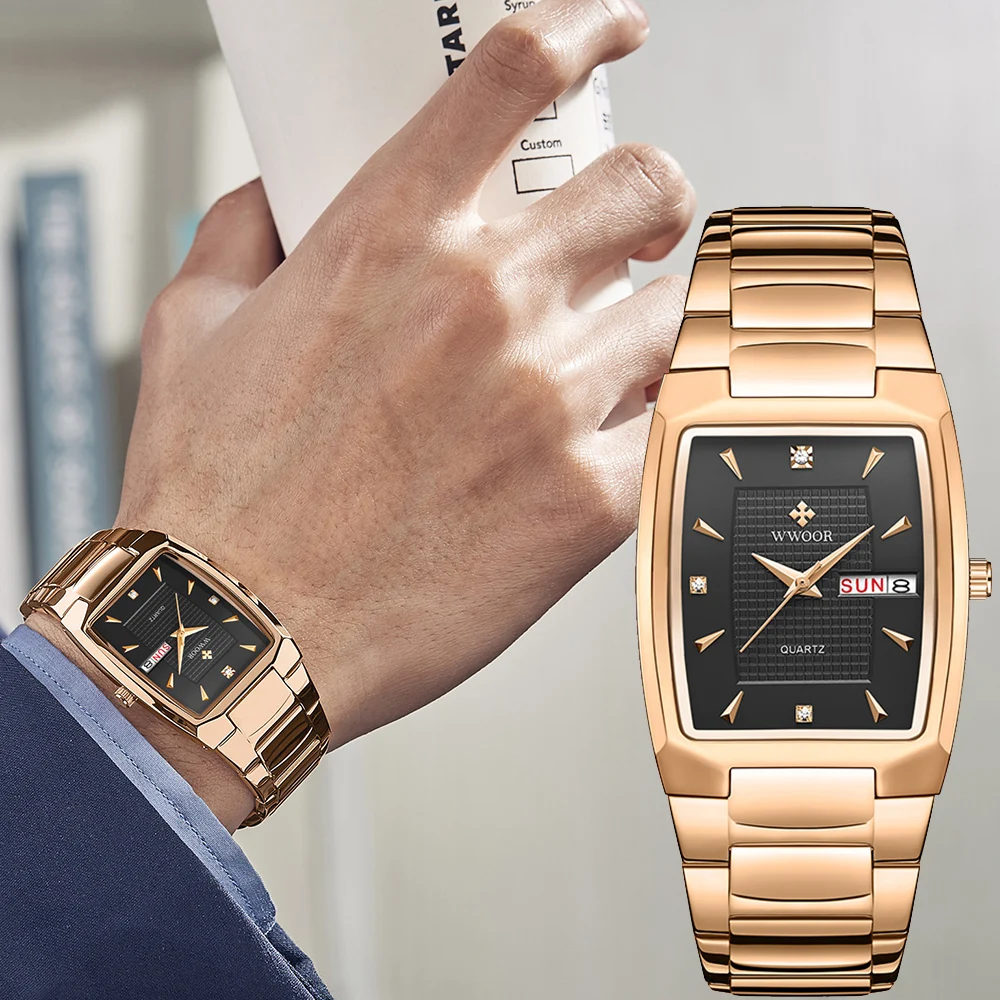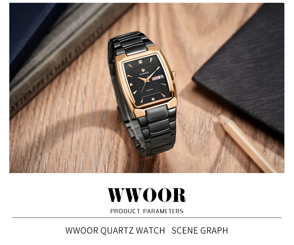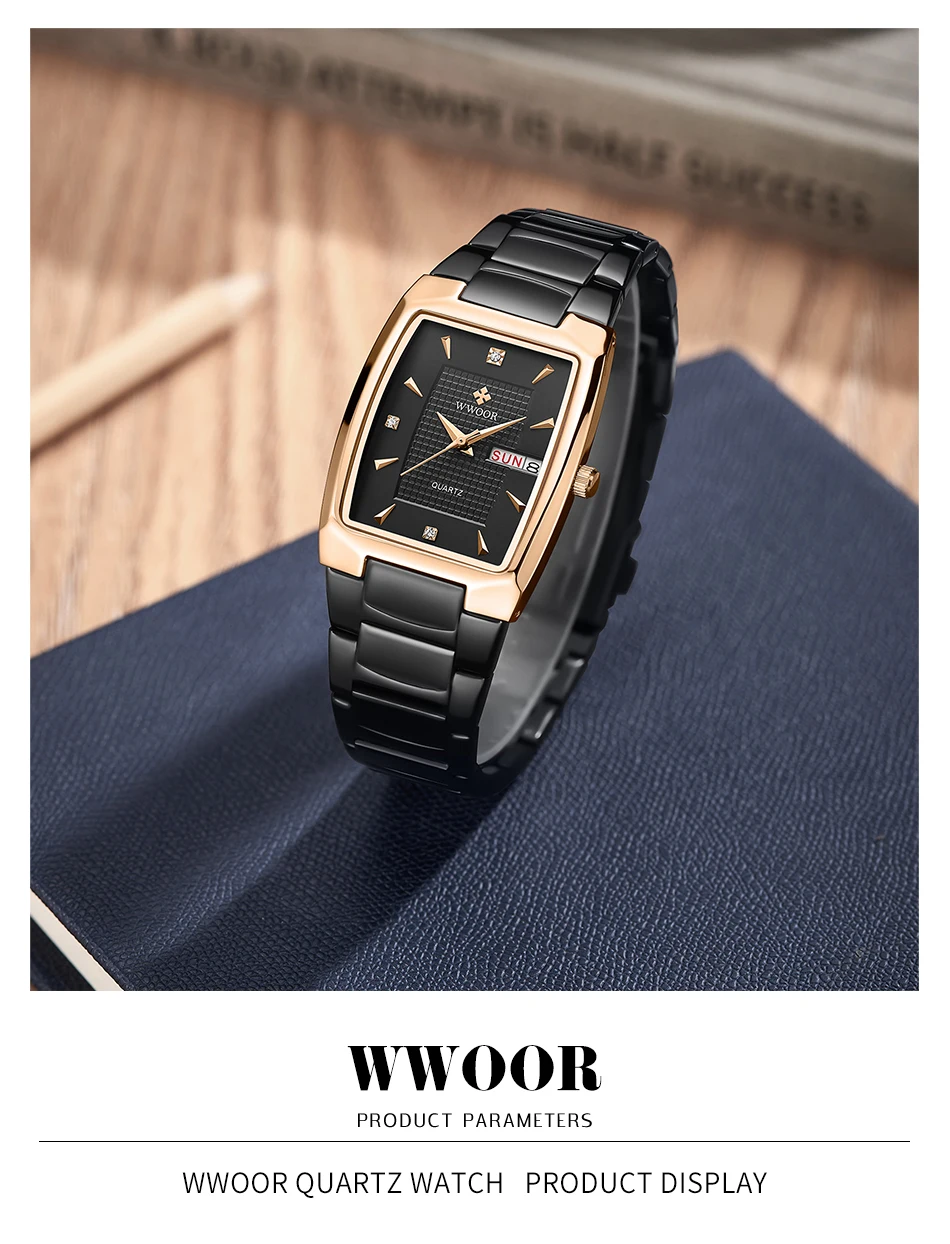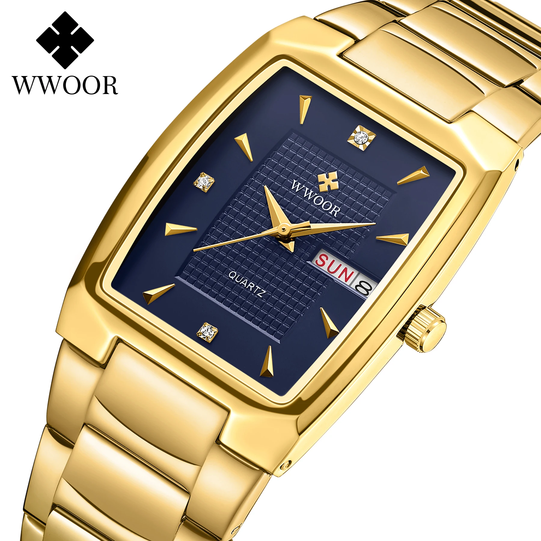Часы наручные WWOOR мужские Кварцевые Светящиеся, модные повседневные деловые стальные, с календарем, 2021