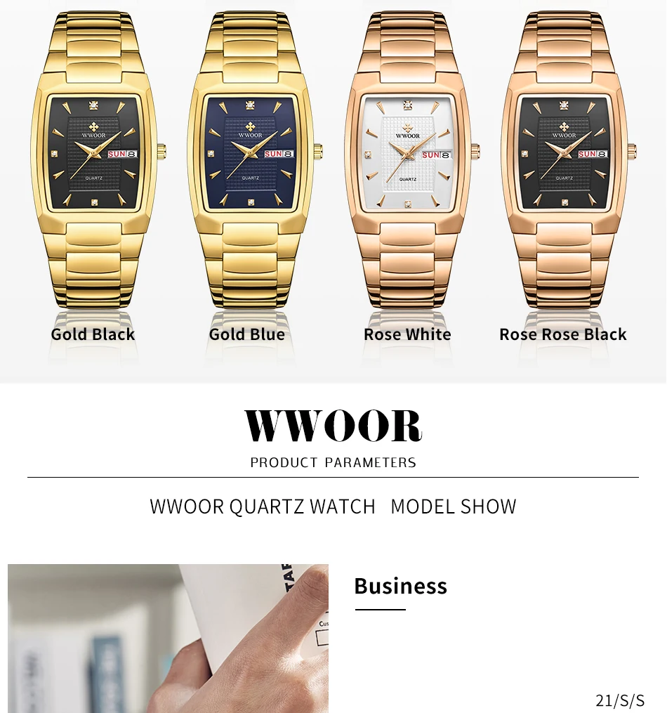 Основные характеристики: -Модный, роскошный, спортивный, стиль отдыха -Водонепроницаемый, светящийся, календарный дисплей -Качественный механизм -Ремень из высококачественной нержавеющей стали -Будет отправлено в течение 24 часов, за исключением праздников, если у товара есть какие-либо проблемы с качеством, вы можете связаться с нами в любое время Приближение спецификации: -Диаметр чехла: 40 мм -Толщина чехла: 8,5 мм -Ширина ремешка: 20 мм -Общая длина: 20 мм Посылка входит: -1 часы WWOOR -1 тег WWOOR -1 регулятор ремешка для часов (вы можете отрегулировать длину ремешка для часов самостоятельно, не нужно ходить в магазин часов) ---- Дорогие друзья, мы являемся производителем, если вам нужна цельная доставка, Перепродажа, оптовая покупка, пожалуйста, свяжитесь с нами.