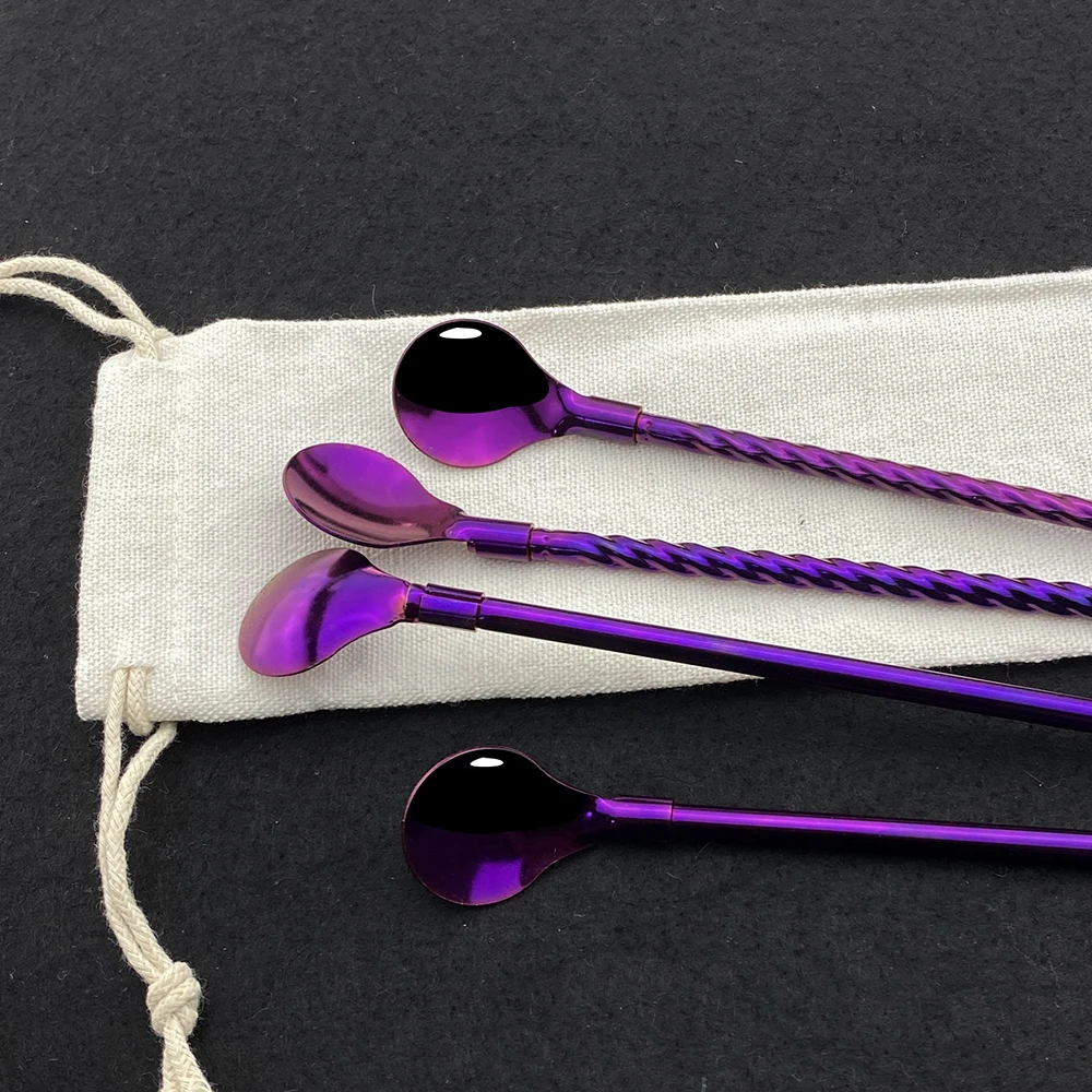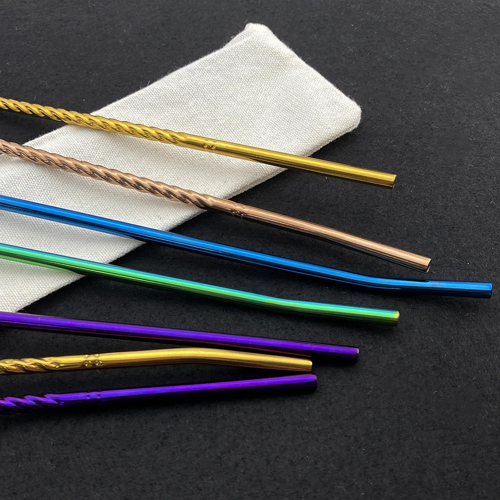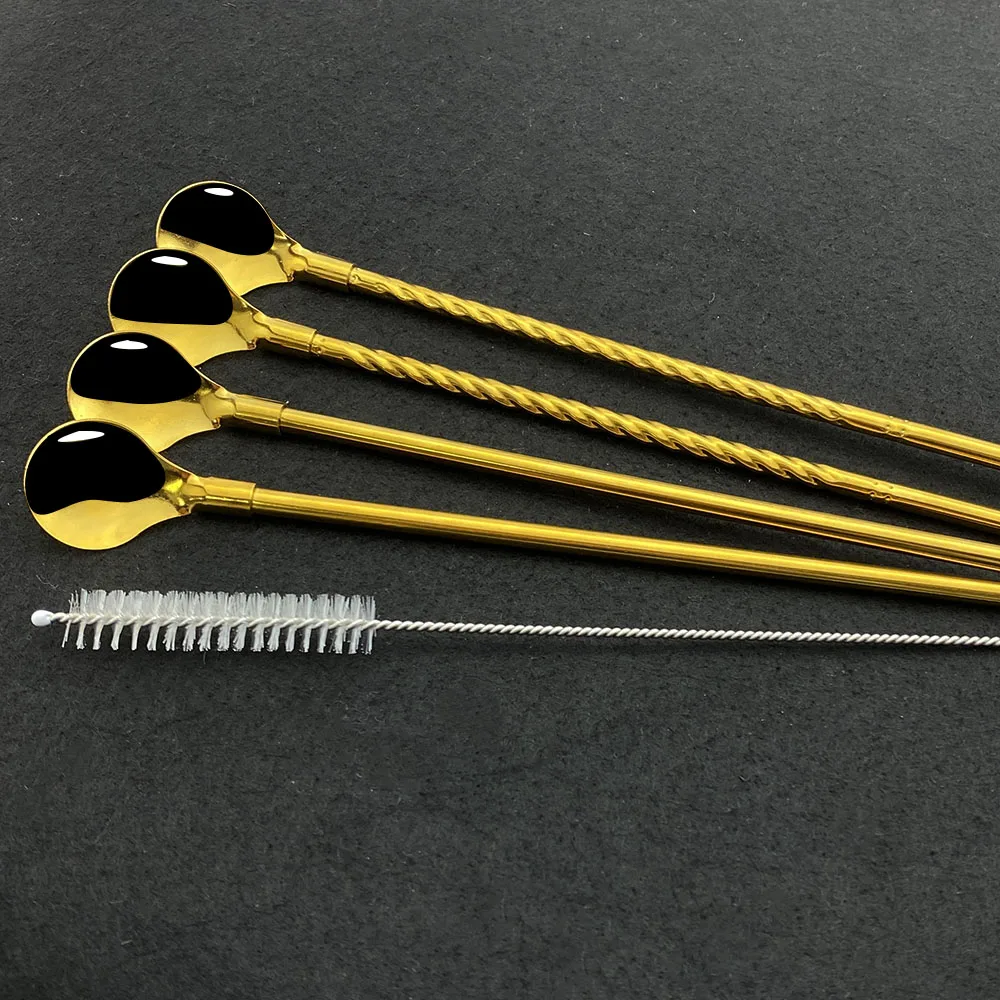 8 шт., многоразовые металлические соломинки для питья, экологически чистые ложки из нержавеющей стали 304, соломинки с чистящей щеткой, портативный пакет из соломинки
