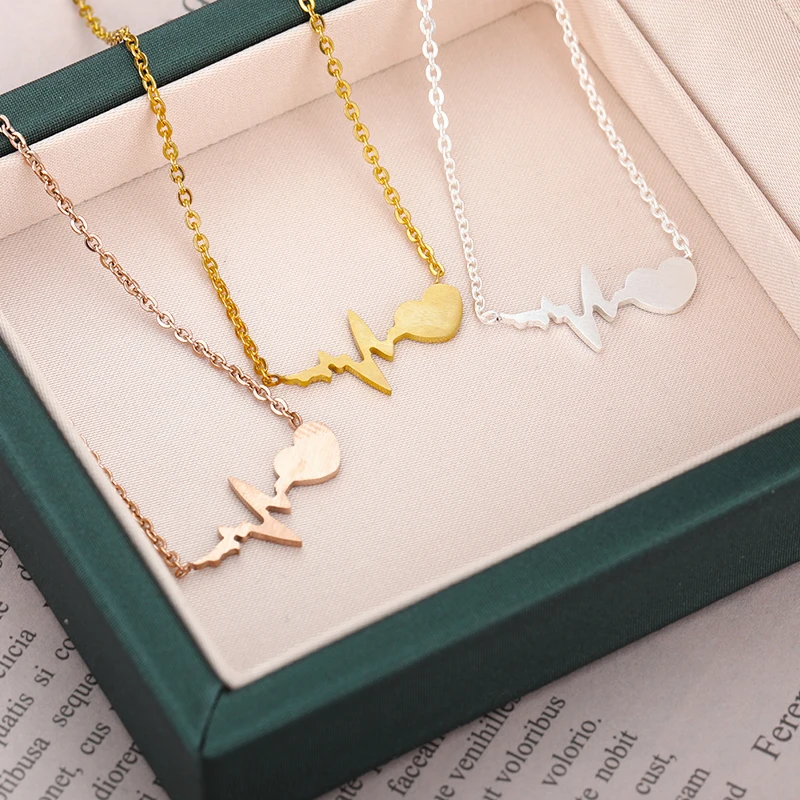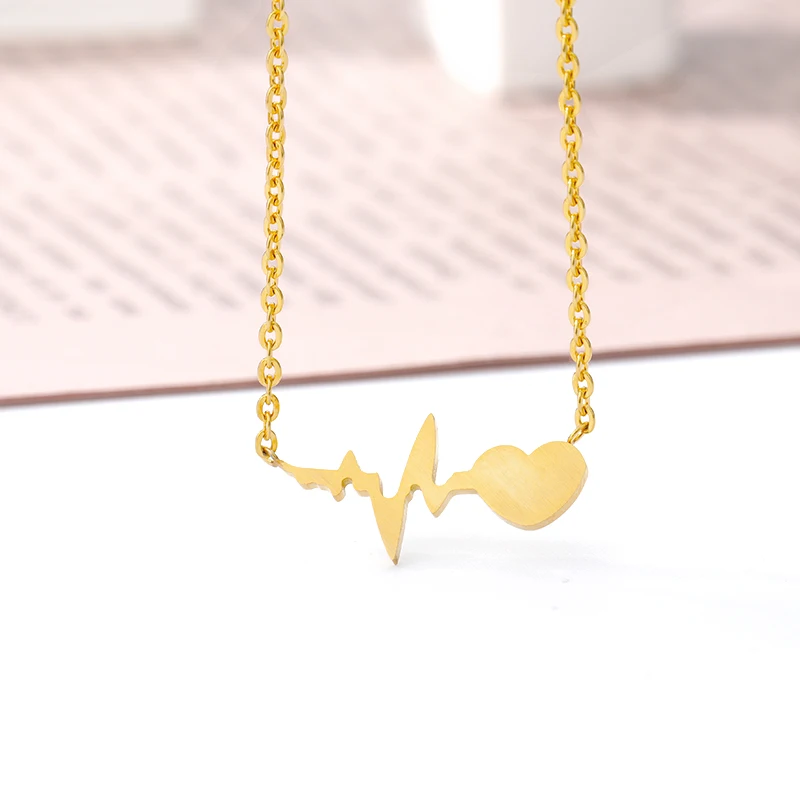 ICFTZWE Love heartbeat ожерелья для женщин из нержавеющей стали золотой кулон любовь в форме сердца колье до ключиц ювелирные изделия подарок Bijoux