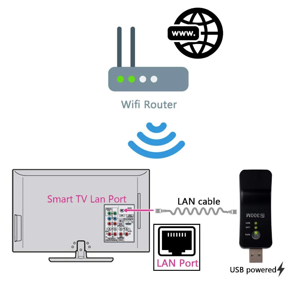 Беспроводной USB Wi-Fi адаптер 300 м для Smart TV, сетевой адаптер ...