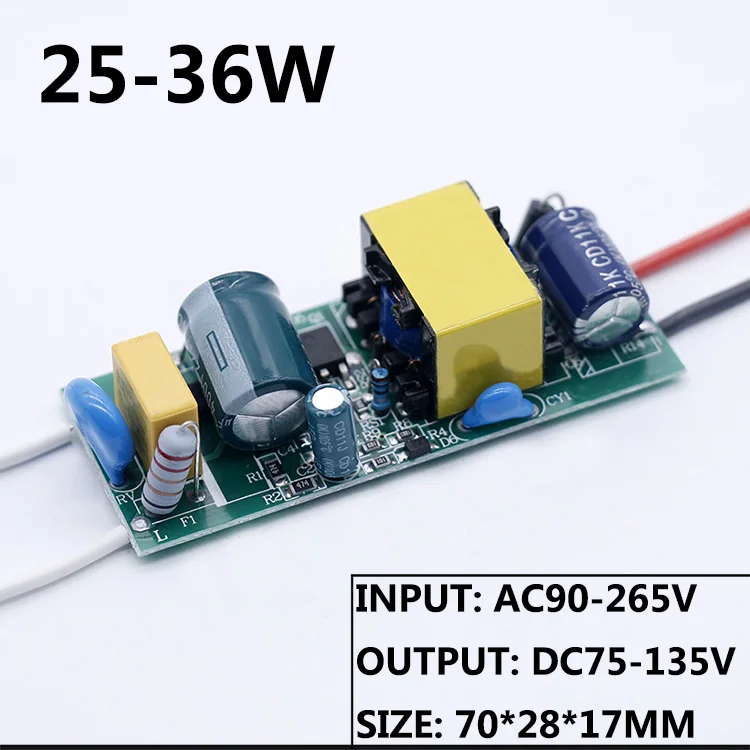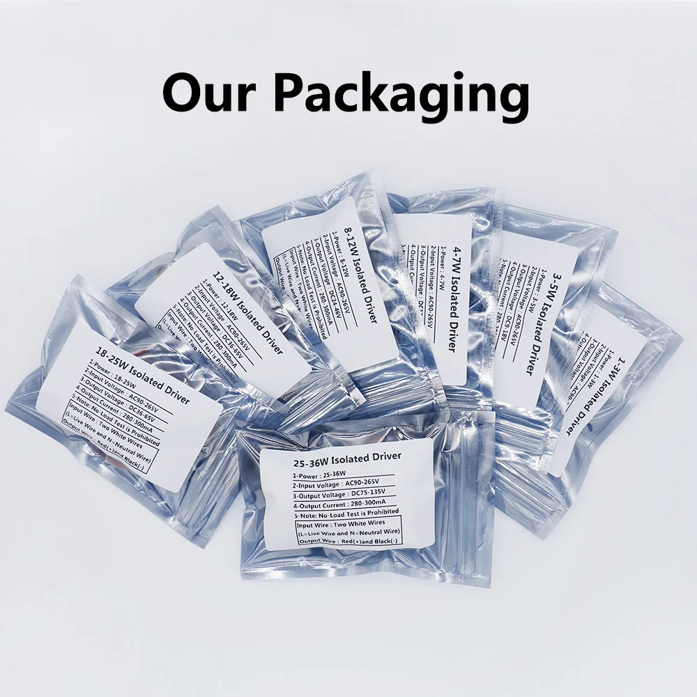 Совет 1: Как выбрать правильный драйвер светодиодный? Я встретил много покупателей и не знал, как выбрать правильный Светодиодный драйвер. Сначала необходимо определить входное напряжение и входной ток лампы на 100%, затем выбрать соответствующее напряжение светодиодный ток светодиодного драйвера. Пример: мы обнаружили Напряжение лампы 40 В и ток 290ма. Поэтому мы должны выбрать вариант 8-12 Вт 280-300 мА. Совет 2: Уважаемый покупатель, если вам нужен светодиодный драйвер полной мощности, пожалуйста, выберите 280-300 текущий продукт, это светодиодный драйвер полной мощности. Совет 3: запрещено проводить испытание на отсутствие нагрузки. Напряжение слишком большое и данные неточны, поэтому обязательно Пройдите тест на нагрузку лампы. Все изолированные драйверы Особенности Светодиодный драйвер автоматически горит, балансируя напряжение в соответствии с производительностью лампы. Светодиодный драйвер 1-3 Вт (использование 3 года) Входное напряжение: 85-265 в Выходное напряжение при испытании нагрузки 230 В переменного тока: 3-12 В Выходной ток: 280-300 мА Испытание без нагрузки 230 В переменного тока: Выходное напряжение: 3-15 в (Опасно! Запрещено тестирование без нагрузки, данные теста неточны.) Светодиодный драйвер 3-5 Вт (использование 3 года) Входное напряжение: 85-265 в Выходное напряжение при испытании нагрузки 230 В переменного тока: 9-18 в Выходной ток: 280-300 мА Испытание без нагрузки 230 В переменного тока: Выходное напряжение: 9-29 в (Опасно! Запрещено тестирование без нагрузки, данные теста неточны.) Светодиодный драйвер 4-7 Вт (использование 3 года) Входное напряжение: 85-265 в Выходное напряжение при испытании нагрузки 230 В переменного тока: 12-26 в Выходной ток: 280-300 мА Испытание без нагрузки 230 В переменного тока: Выходное напряжение: 12-32 в (Опасно! Запрещено тестирование без нагрузки, данные теста неточны.) Светодиодный драйвер 8-12 Вт (использование 3 года) Входное напряжение: 85-265 в Выходное напряжение при испытании нагрузки 230 В переменного тока: 24-46 в Выходной ток: 280-300 мА Испытание без нагрузки 230 В переменного тока: Выходное напряжение: 24-59 в (Опасно! Запрещено тестирование без нагрузки, данные теста неточны.) 12-18 Вт Светодиодный драйвер (использование 3 года) Входное напряжение: 85-265 в Выходное напряжение при испытании нагрузки 230 В переменного тока: 36-65 в Выходной ток: 280-300 мА Испытание без нагрузки 230 В переменного тока: Выходное напряжение: 36-88 в (Опасно! Запрещено тестирование без нагрузки, данные теста неточны.) Светодиодный драйвер 18-25 Вт (использование 3 года) Входное напряжение: 85-265 в Выходное напряжение при испытании нагрузки 230 В переменного тока: 54-87 в Выходной ток: 280-300 мА Испытание без нагрузки на 230 В переменного тока: Выходное напряжение: 54-134 в (Опасно! Запрещено тестирование без нагрузки, данные теста неточны.) Светодиодный драйвер 25-36 Вт (использование 3 года) Входное напряжение: 85-265 в Выходное напряжение при испытании нагрузки AC230V: 75-135V Выходной ток: 280-300 мА Испытание без нагрузки на переменный ток 230В: Выходное напряжение: 75-135 в (Опасно! Запрещено тестирование без нагрузки, данные теста неточны.) Преимущества: 1-трансформатор Прочная медная проволока Мощность достаточна, а температура низкая. 2 чипа Внедрение первого бренда IC-Aishi Высококачественный Интеллектуальный постоянный ток Защита от перенапряжения, защита от перегрузки, Защита от перегрева, защита о