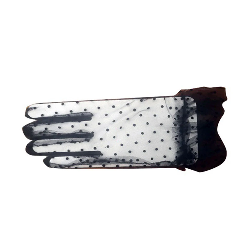 Женские тюлевые перчатки, сексуальные прозрачные вечерние перчатки в горошек, женские летние перчатки с закрытыми пальцами, ультратонкие кружевные сетчатые марлевые перчатки