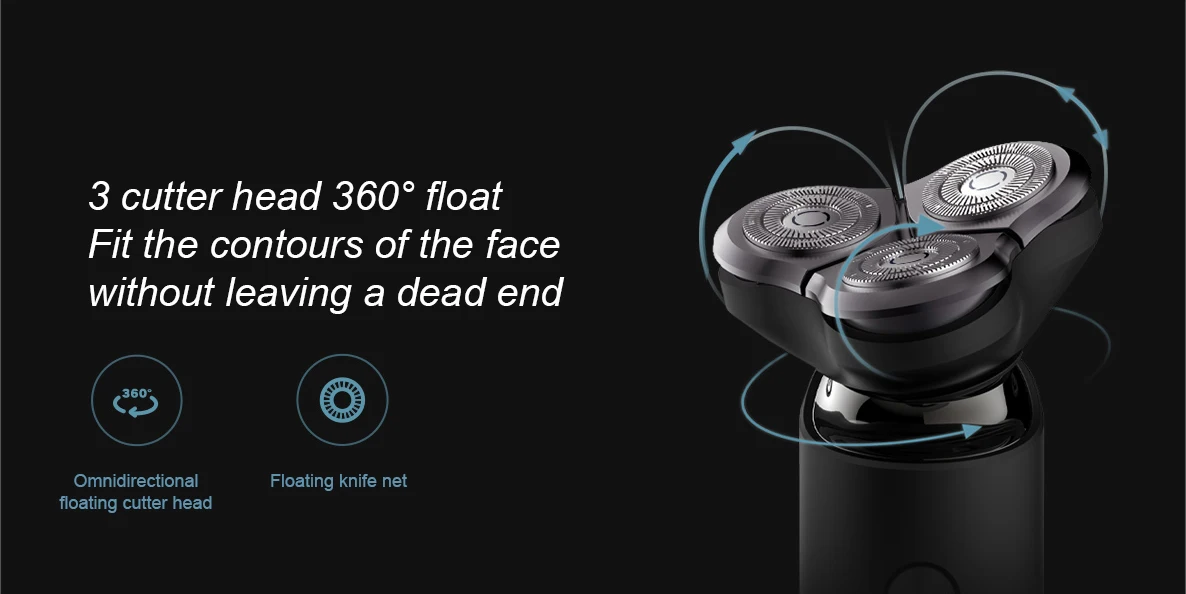 Сложные контуры лица и направления бороды требуют более гибкой бритвы. Mijia электробритва S500 с 3 головками, 360 ° плавающая система шпона, легко справляется с бородой разных углов лица, может быть побрена в одно время