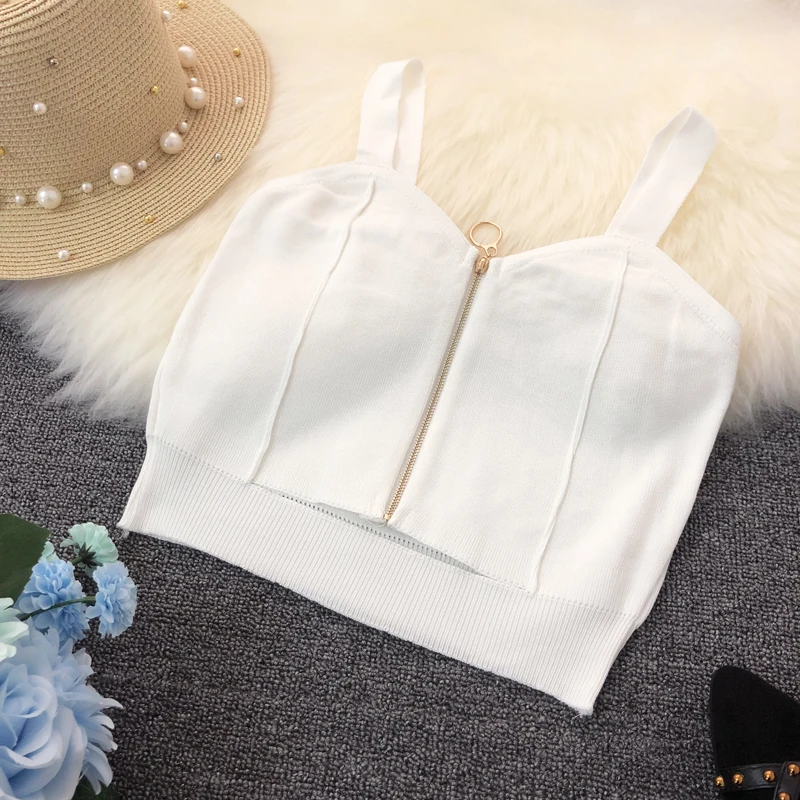 Кроп-топ женский трикотажный на молнии, без рукавов, с дырками, летний