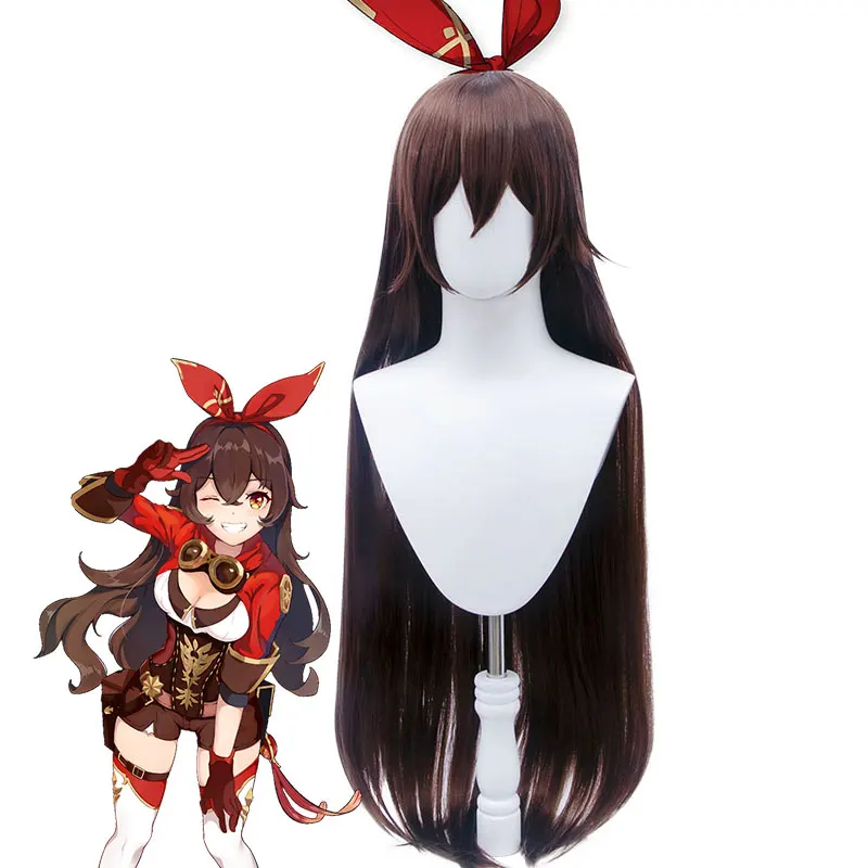 Янтарный Cos парик 100 см каштановые волосы Синтетические длинные прямые волосы, парики для женщины Genshin воздействия наращивание волос вечерние парик MUMUPI