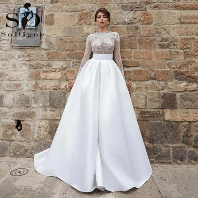 Женское свадебное платье со съемным шлейфом SoDigne, длинное кружев...