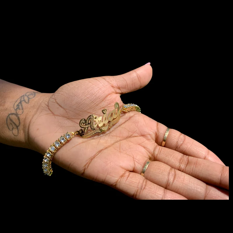 Женский двухцветный браслет с именной табличкой, золотистый браслет-цепочка для тенниса, подарок, 2021
