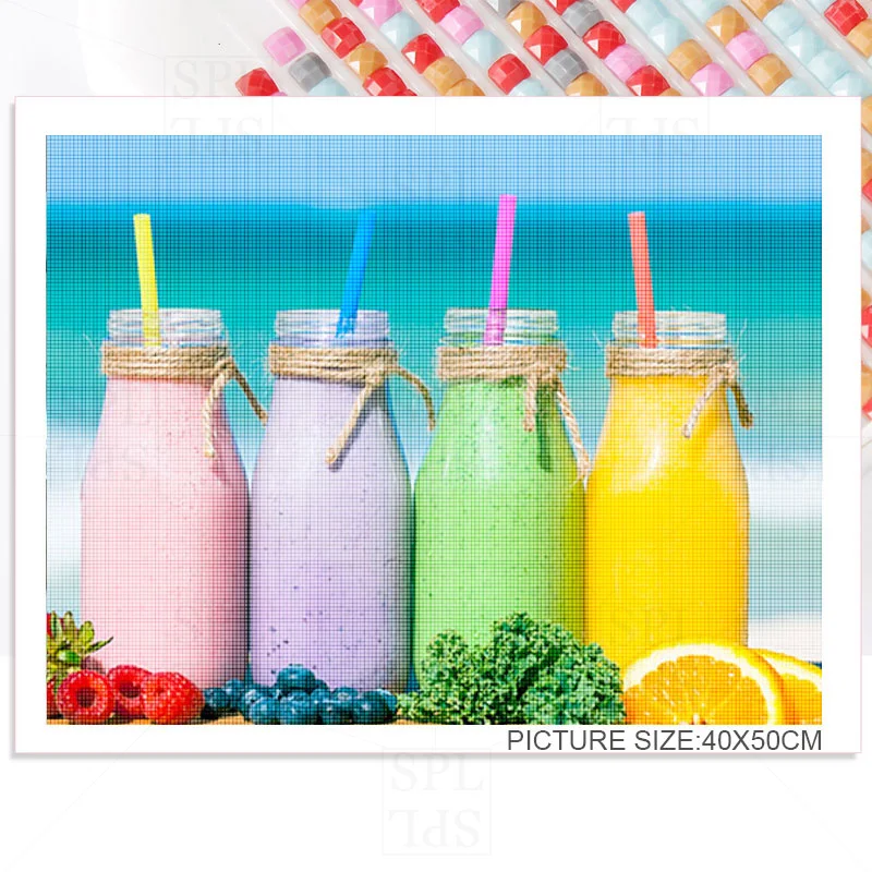 Алмазная мозаика сделай сам, рисование фруктового сока и чая, квадр...
