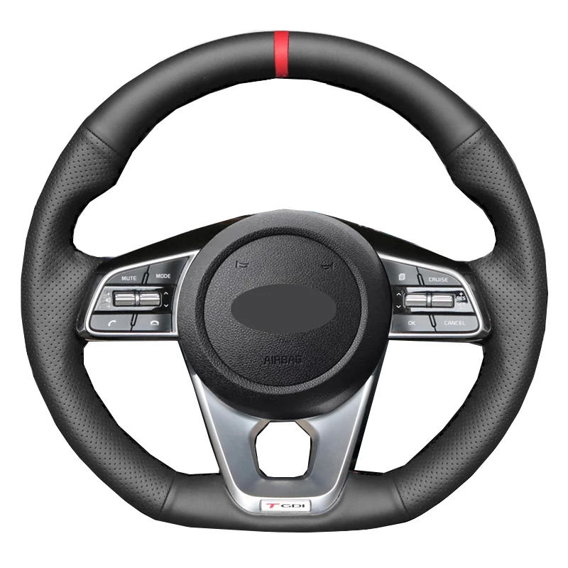 Ручное шитье чехол рулевого колеса автомобиля Обёрточная бумага для Kia K5 Оптима 2019 2020 Форте GT 2019-2021 Kia Ceed Cee 'd GT 2018 2019 красный маркер