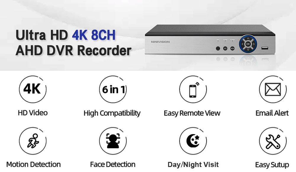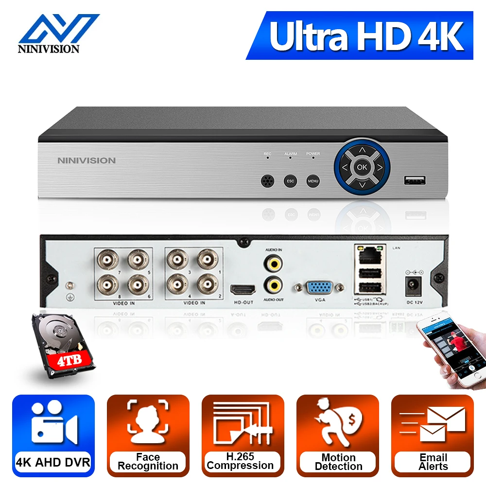 NINIVISION 4K AHD DVR человеческое AI распознавание лица запись и лицо умное воспроизведение 8CH 6 в 1 DVR рекордер для системы видеонаблюдения