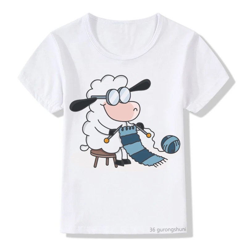 Футболка детская с мультяшным принтом овцы, смешная Милая рубашка в стиле Харадзюку, подходит для мальчиков и девочек, летние белые топы