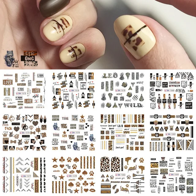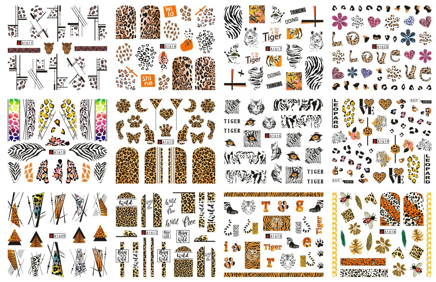 Набор стикеров для ногтей, 12 дизайнов, цветы, кленовый лист, Леопардовый принт, переводные наклейки для ногтей, слайдер, цветочный лист, украшение для маникюра