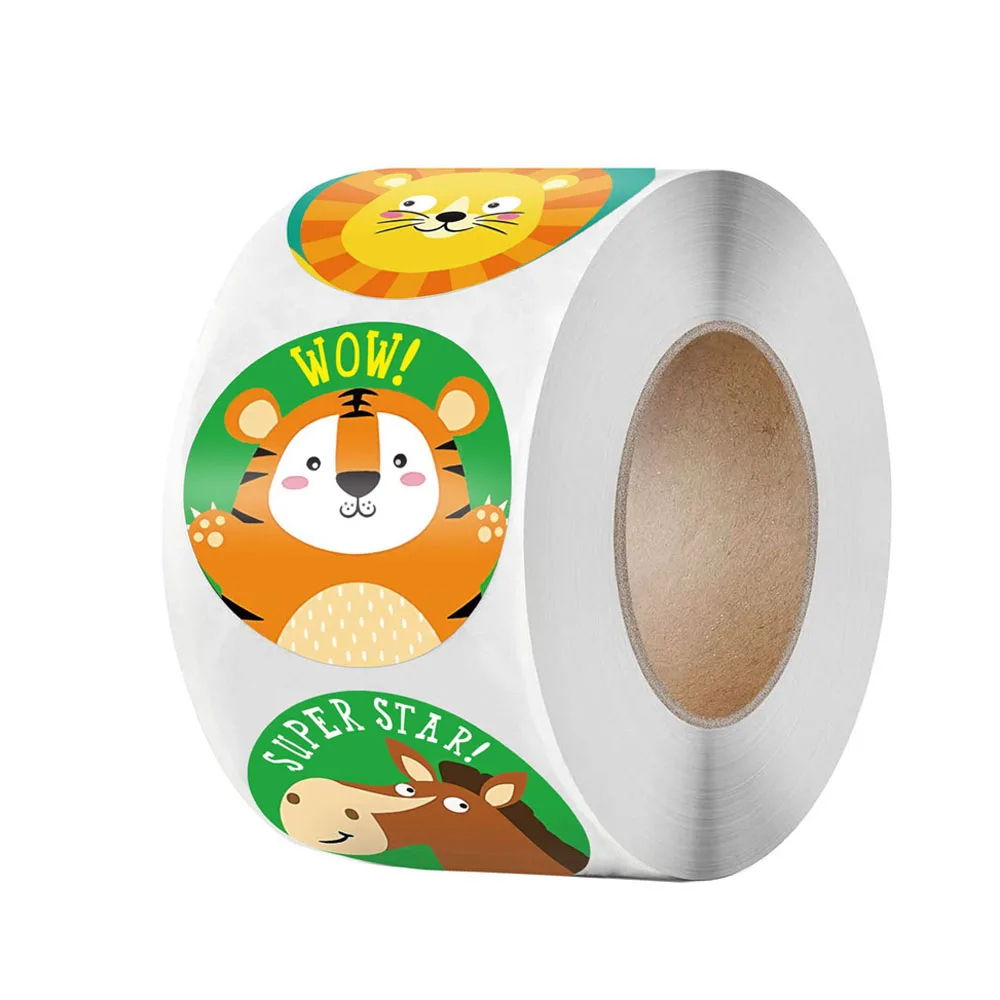 24 стиля, 500 шт.рулон, 1 дюйм, милые Мультяшные наклейки с животны...