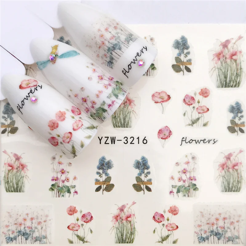 Модные наклейки для ногтей сделай сам, Одуванчик, трава, Слайдеры для воды, наклейки, красивые цветы, букет, наклейки для ногтей, наклейки, аксессуары