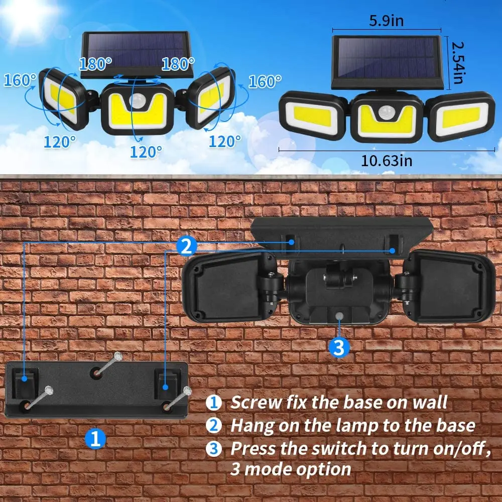 солнечная панель солнечная панель Уличные фонари на солнечной батарее, водонепроницаемый уличный светильник для сада, дорожек, улицы, ландшафта, настенный прожектор с питанием от солнечной энергии
