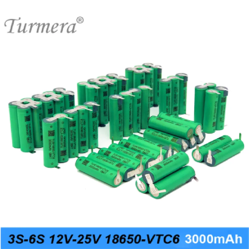 Turmera 3S 12,6 V 4S 16,8 V 5S 18V 6S 25,2 V 18650 литиевый аккумулятор TUR18650-VTC6 3000mah 6000mah сварка для шуруповерта Shurik shura