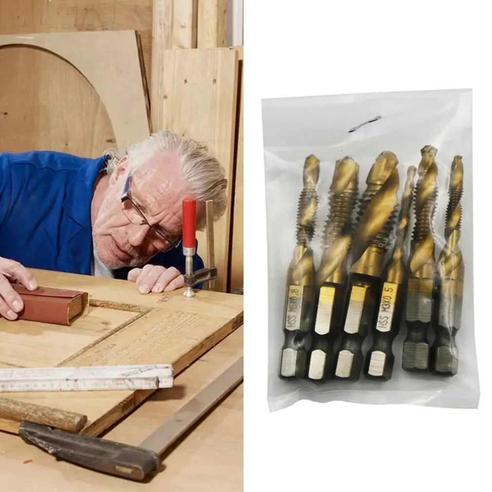 Сверло для метчиков с шестигранным хвостовиком, с титановым покрытием, резьба Винт из быстрорежущей стали, метрическое сверло под Метчик бит, винтовой станок составной кран м3, M4, M5, M6, M8, ручной инструмент