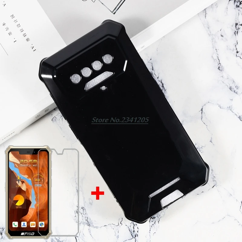 Чехол-накладка для Oukitel F150, B2021, черный чехол ТПУ, с закаленным стеклом