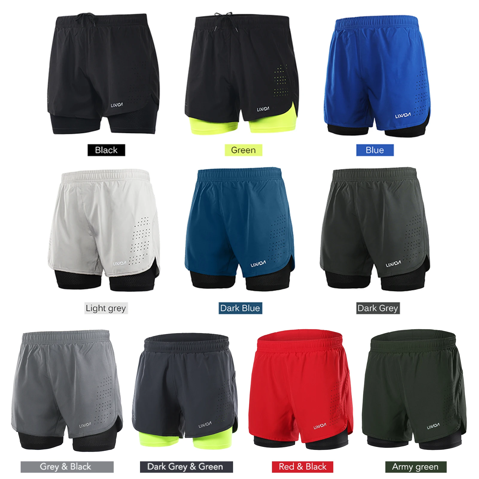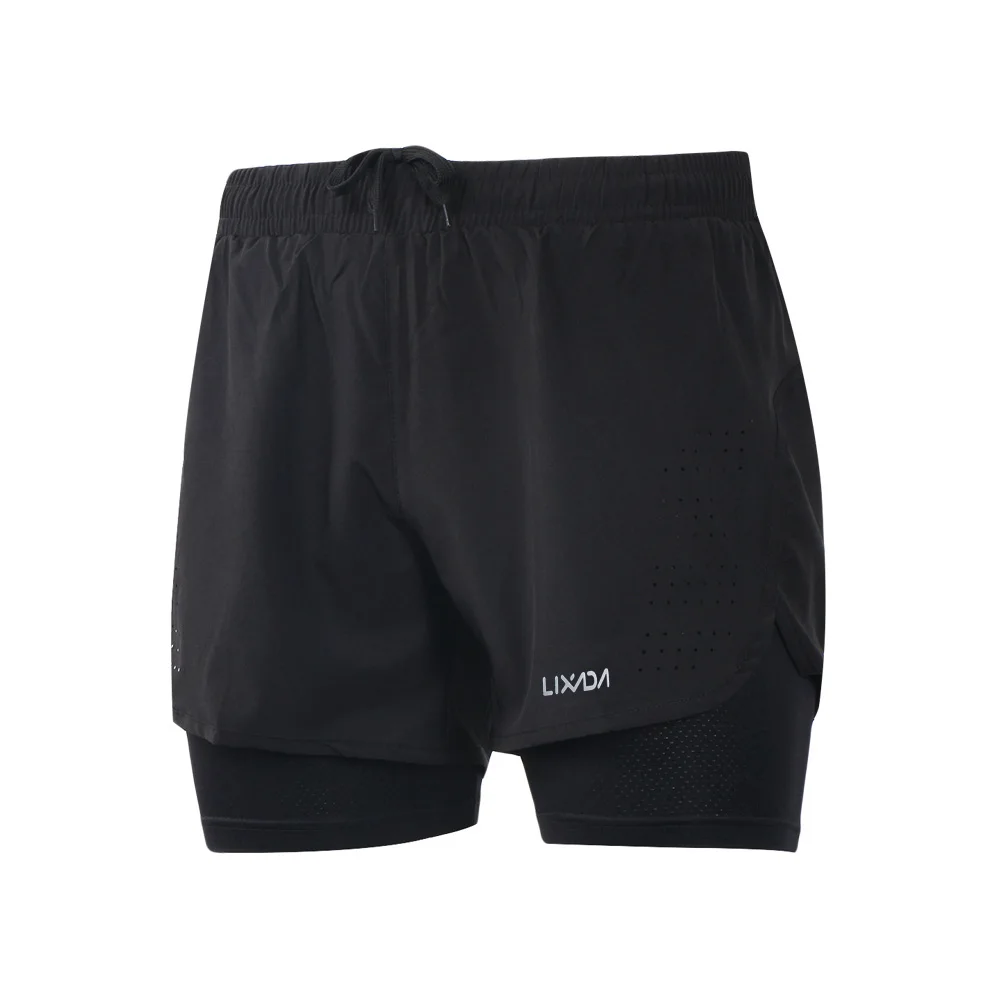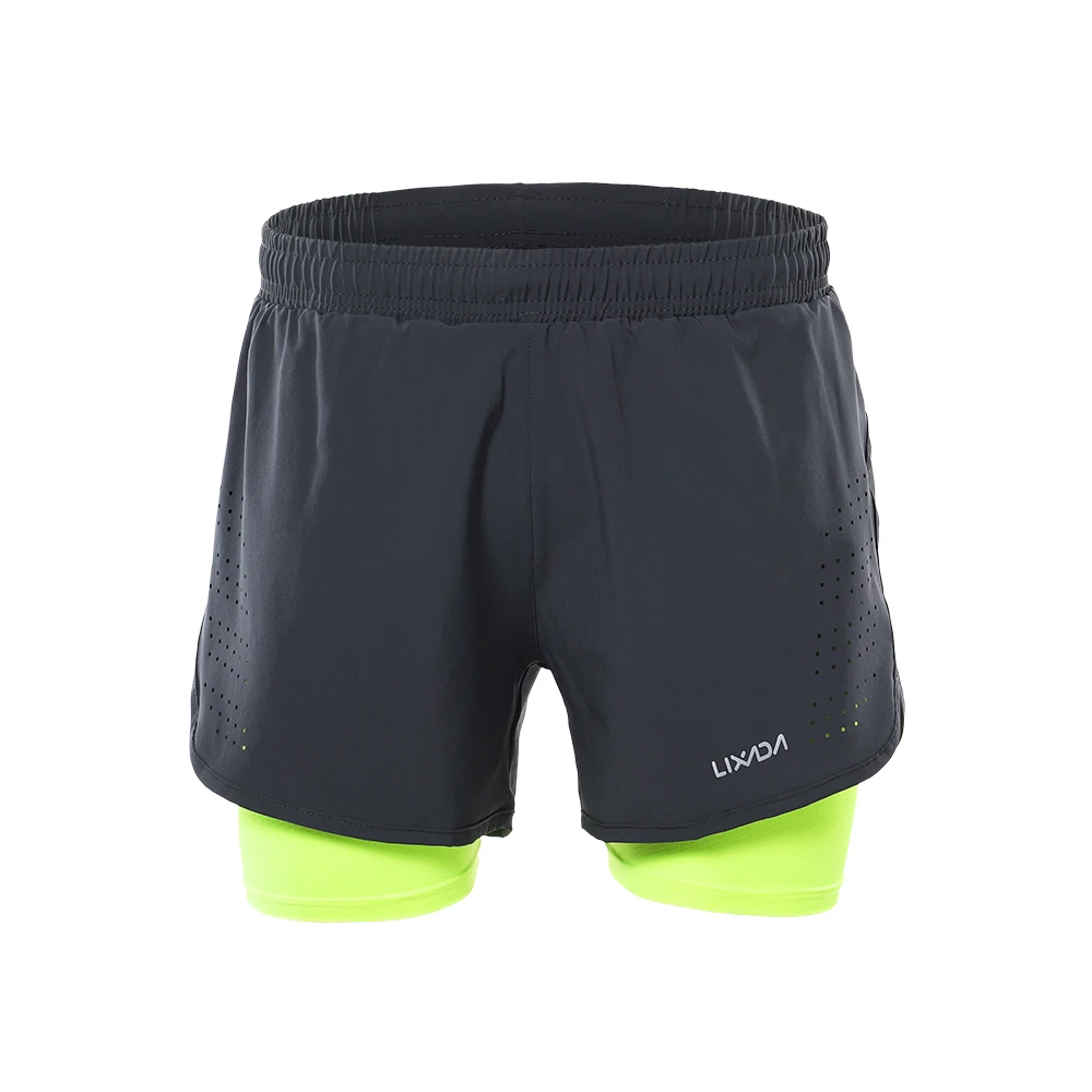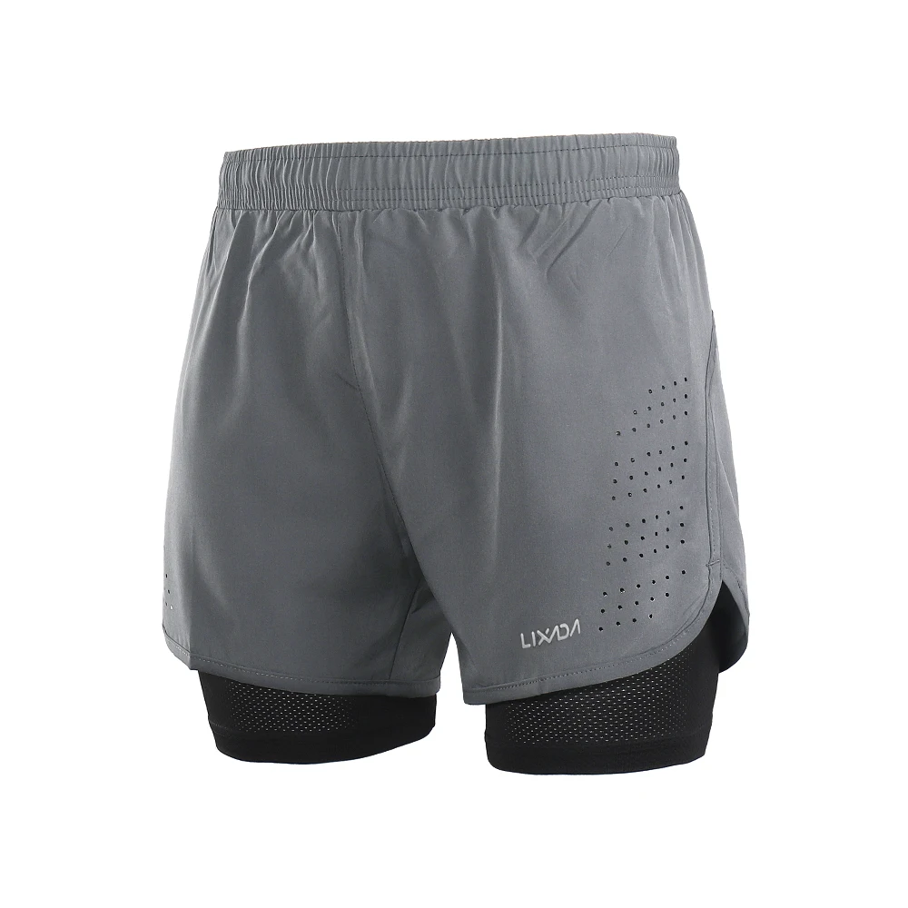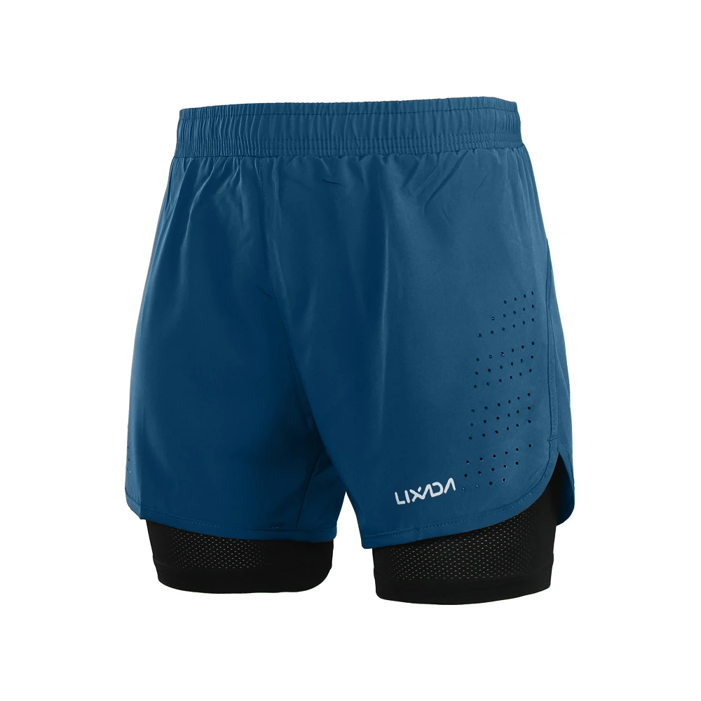 Шорты 2 в 1 Мужские Lixada для бега, быстросохнущие, дышащие, для активных тренировок, бега, велоспорта, с более длинной подкладкой