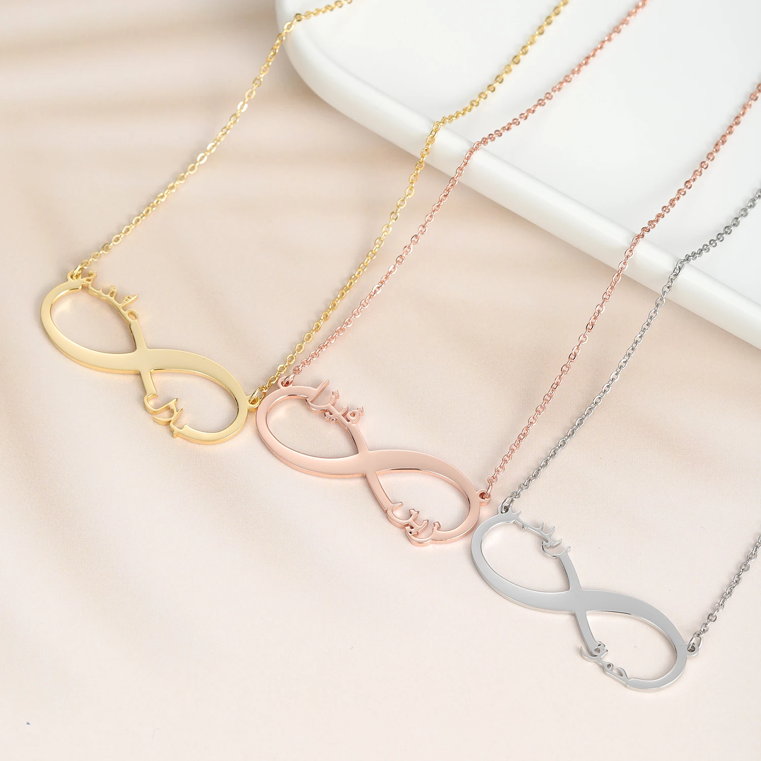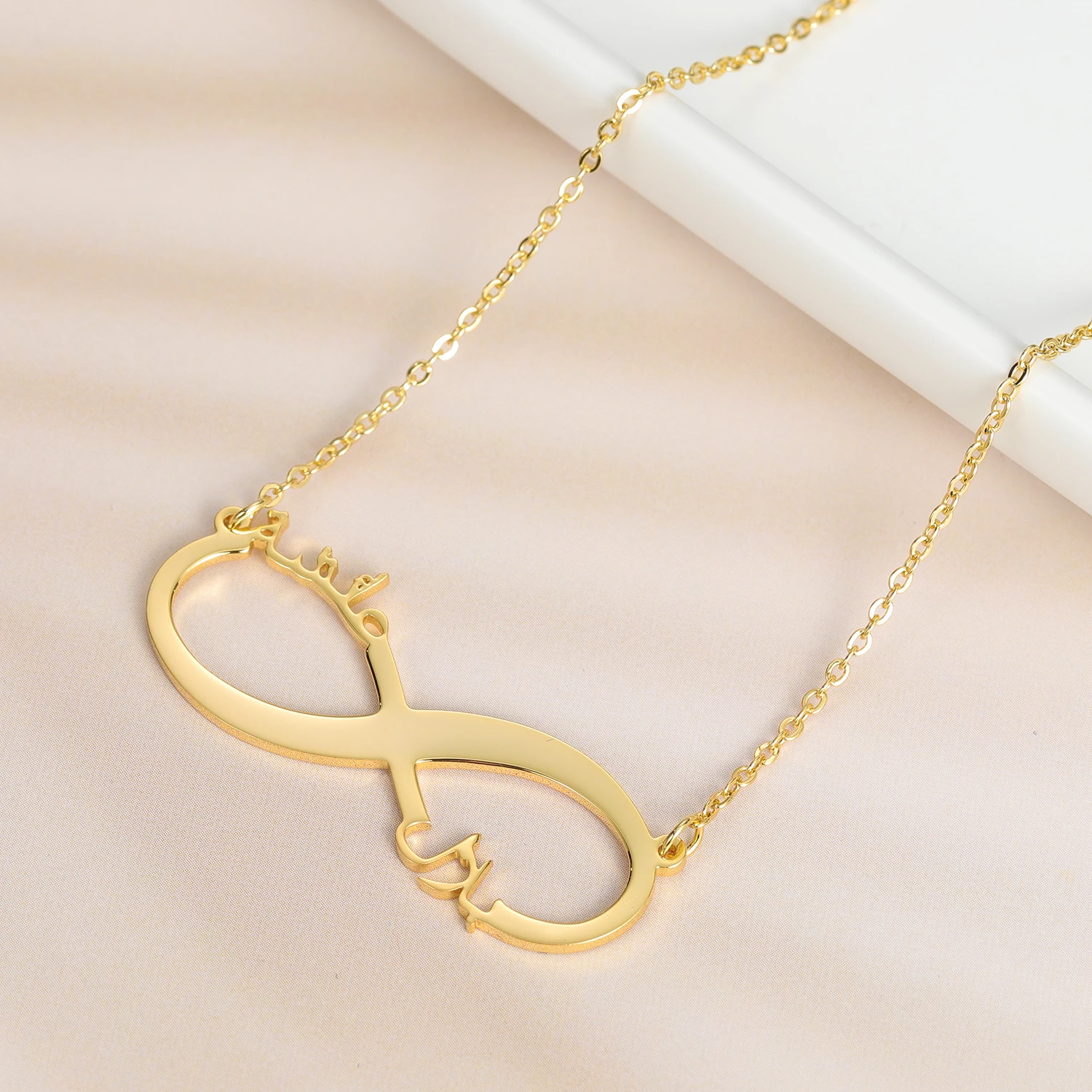 Изготовленный На Заказ арабский имя Бесконечность ожерелье ювелирные изделия нержавеющей стали подвеска для золотой цепочки персонализированные для женщин драгоценный камень GIF