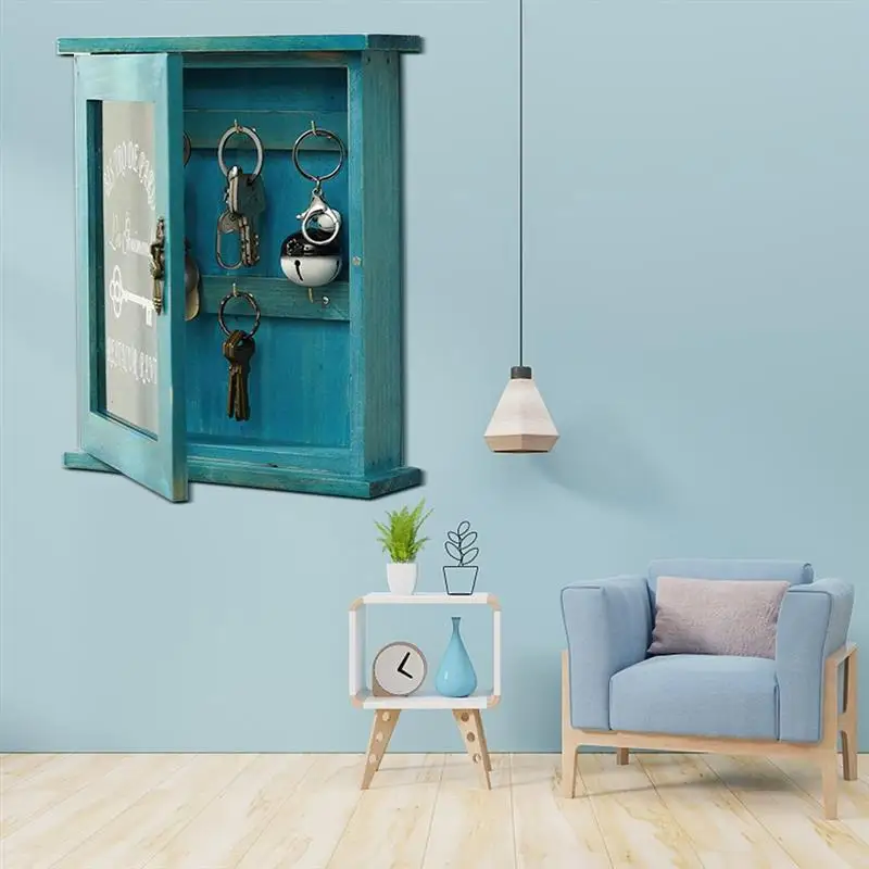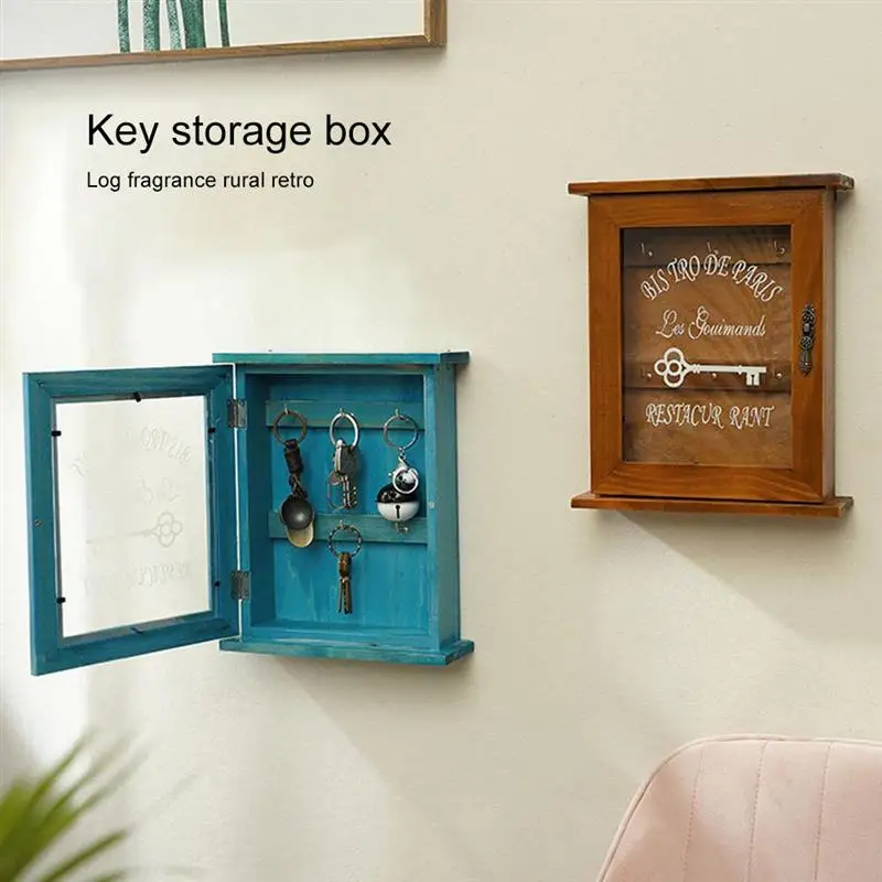 Деревянный шкаф с ключом настенный ящик для хранения ключей, декоративный, в пасторальном стиле, для дома, отеля, на полпути к кухне