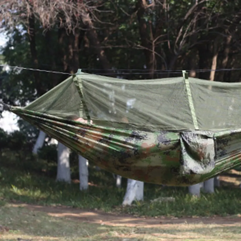Портативный уличный гамак для кемпинга, на 1-2 человек, высокопрочная подвесная кровать из парашютной ткани, с москитной сеткой, для охоты, сна