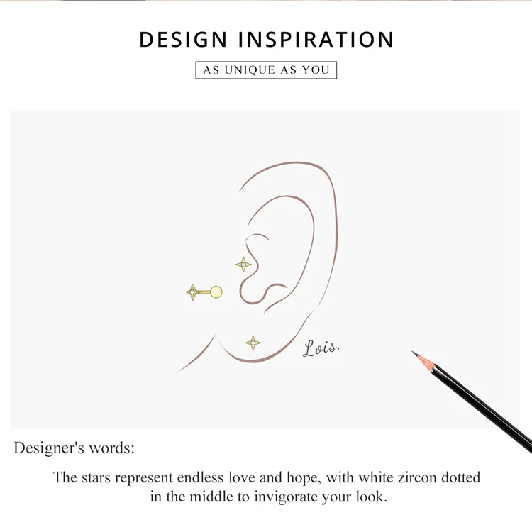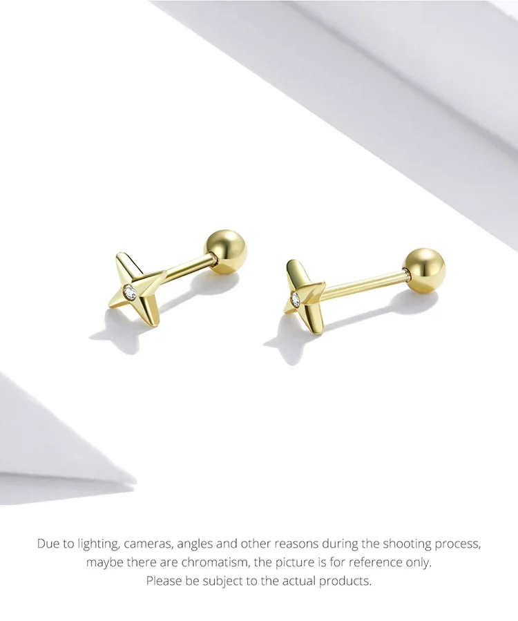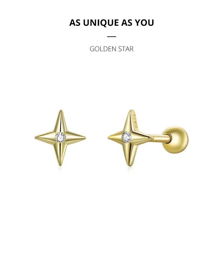 Женские серьги-гвоздики в виде Золотой Звезды, из серебра 925 пробы