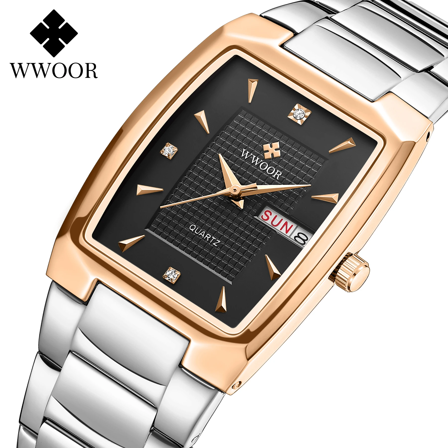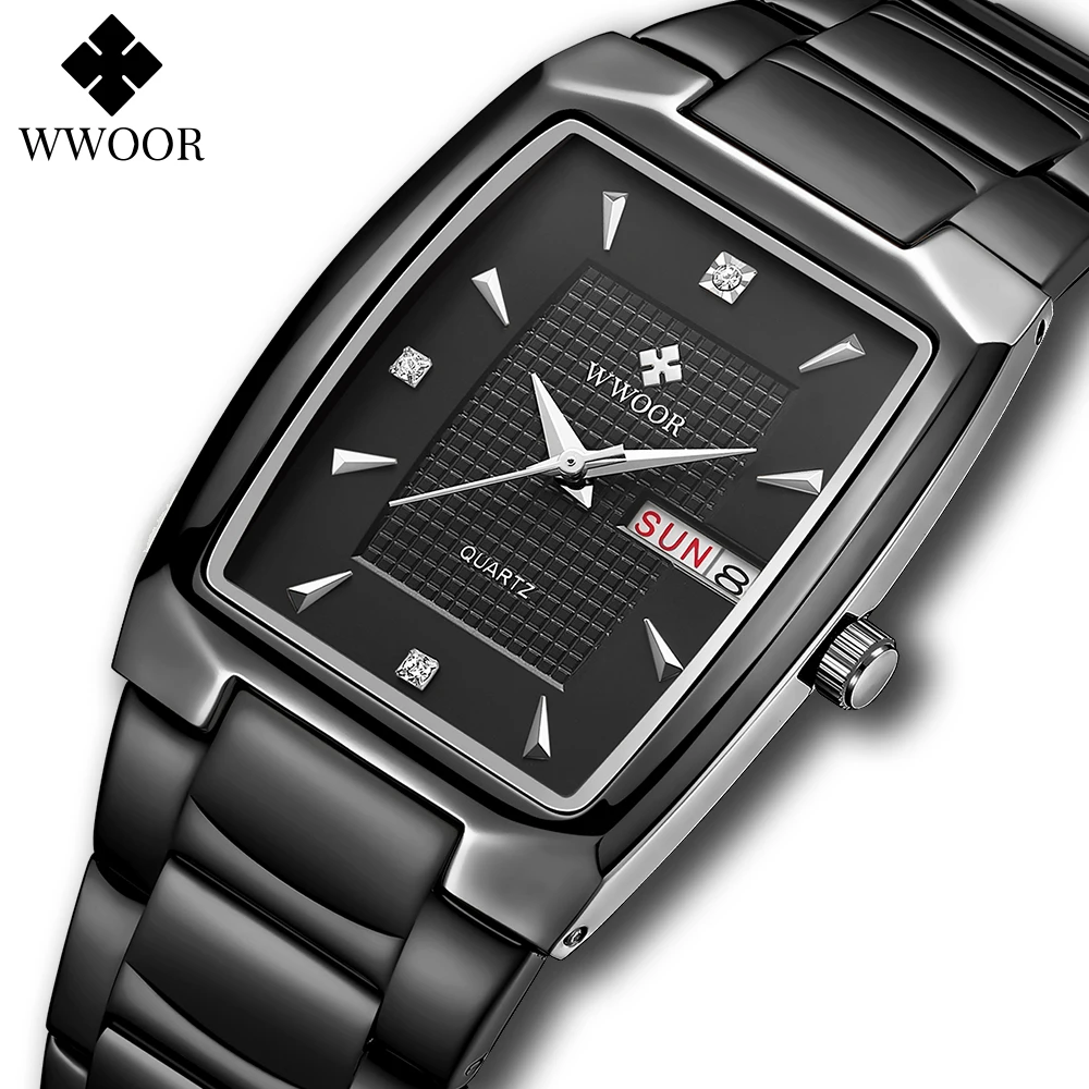 Мужские наручные часы 2021 WWOOR, брендовые Роскошные Мужские кварцевые часы, мужские деловые часы с датой, повседневные модные черные часы