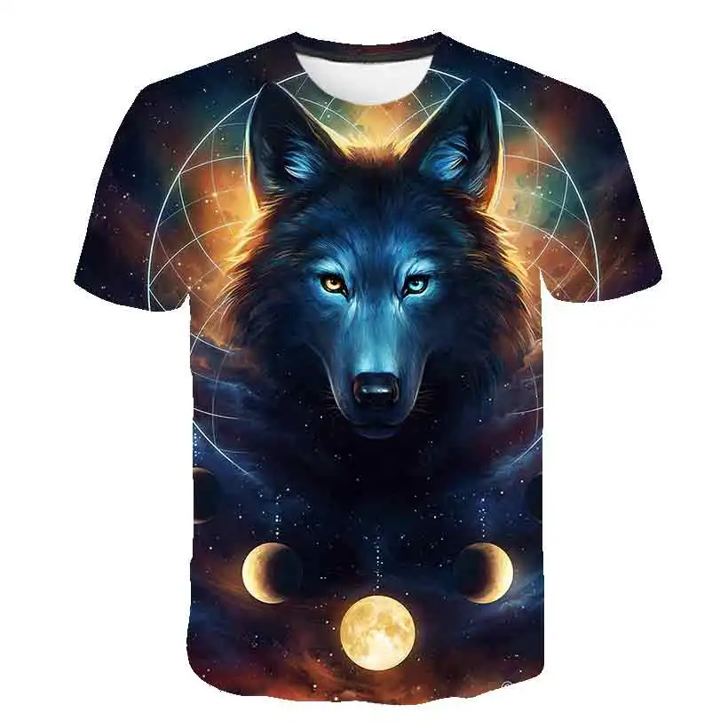 2021 летняя детская 3D футболка животных Волчья От 4 до 14 лет детская спортивная футболка для мальчиков, детская модная одежда для девочек, футболки