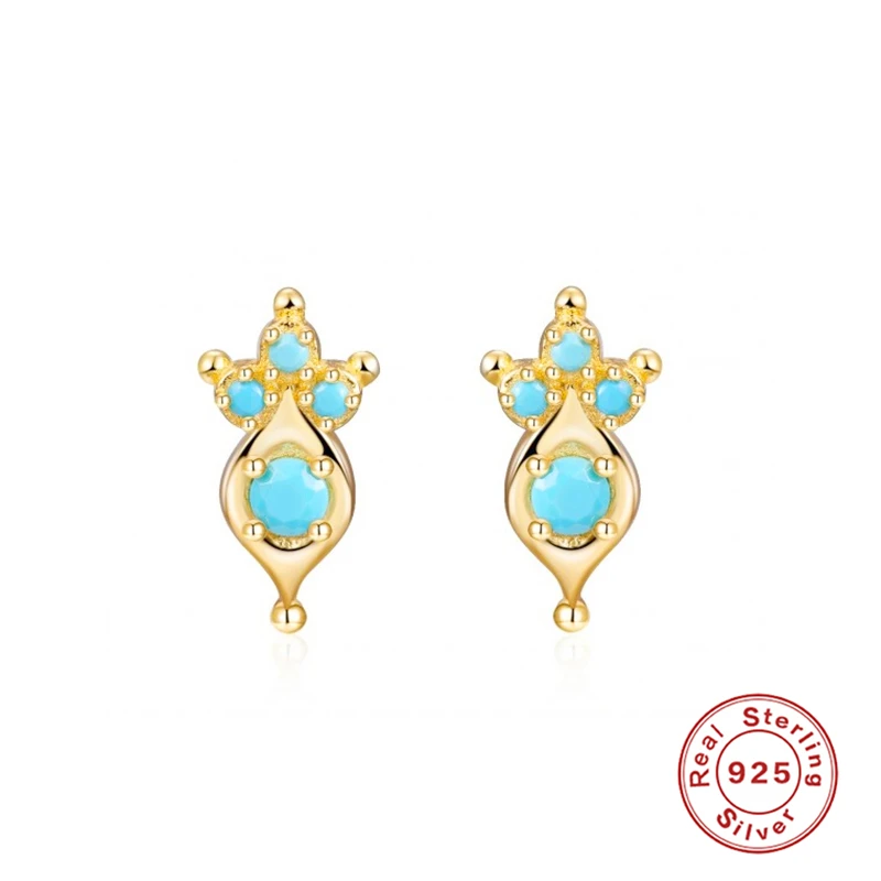 Женские маленькие серьги-гвоздики из стерлингового серебра 925 пробы в Корейском стиле с бирюзой, минималистичные украшения в богемном стиле