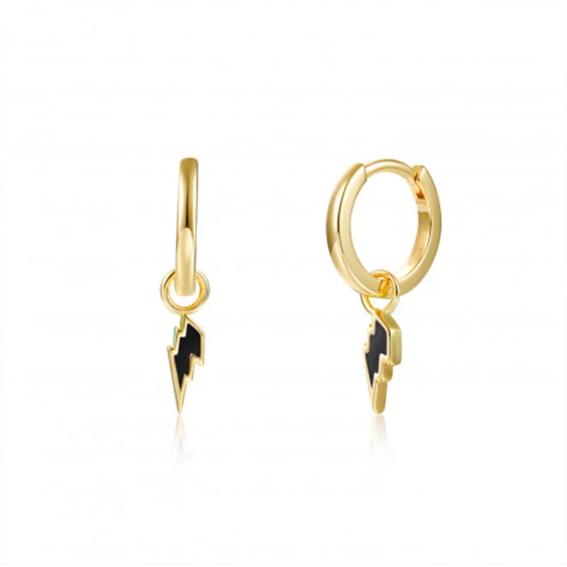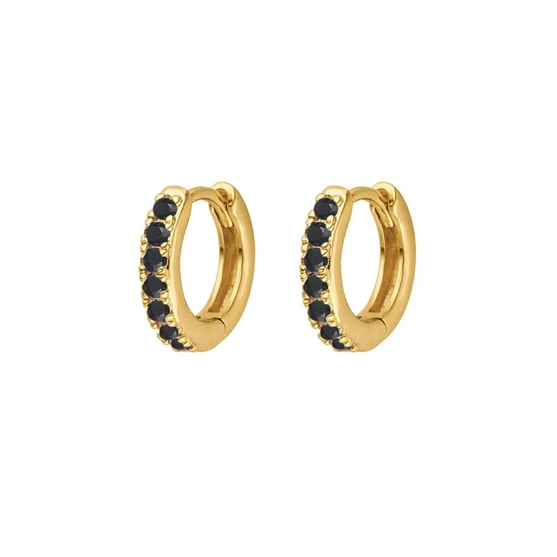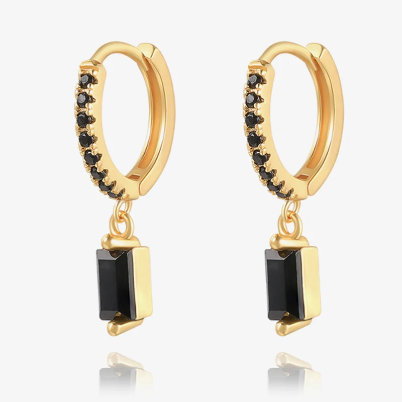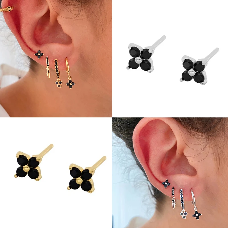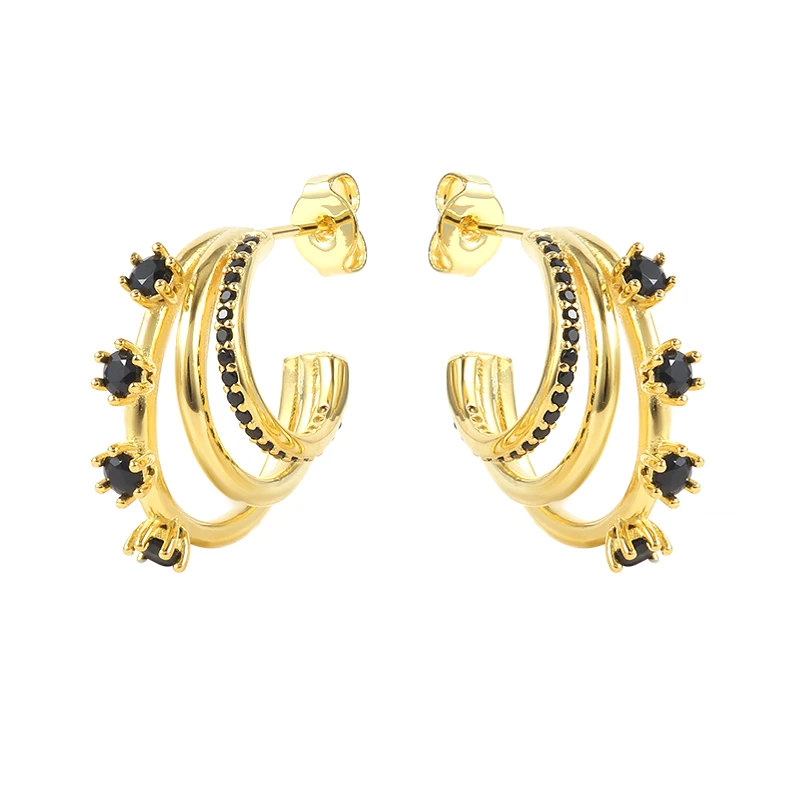 Серьги-гвоздики золотистыесеребристые с черным Цирконом