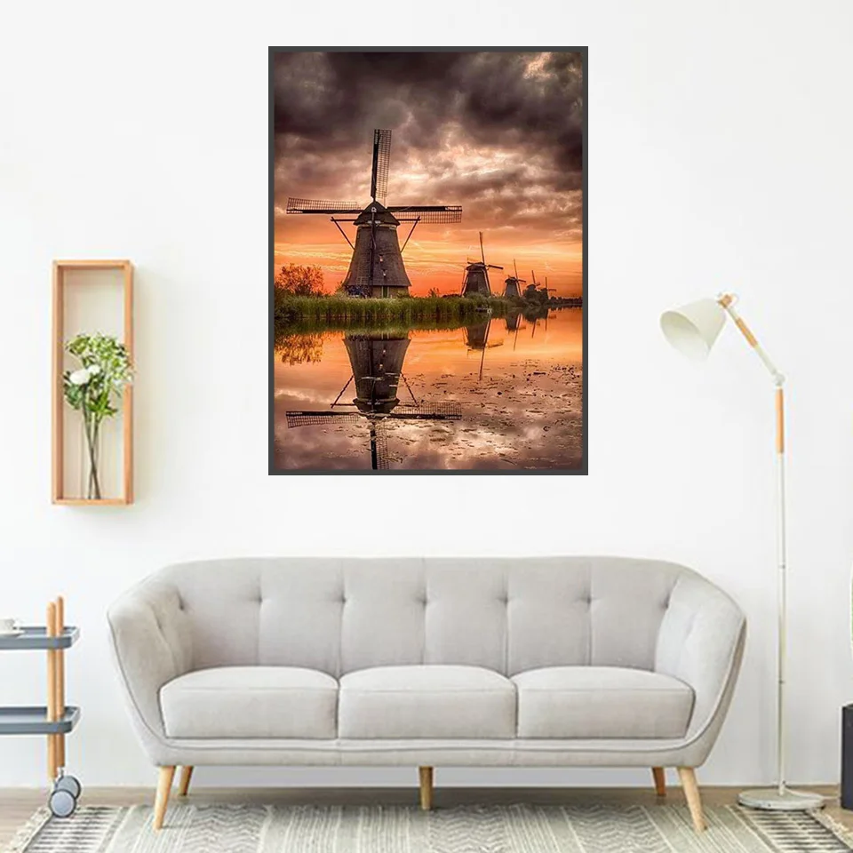EverShine Алмазная мозаика мельница 5D DIY Алмазная вышивка пейзаж наборы для вышивки крестиком закат бисером вышивка домашнего декора