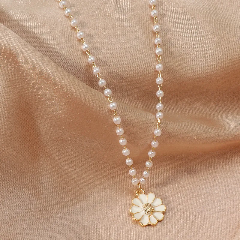 Kpop, модное, ожерелье с кулоном, женская бижутерия, Женская цепочка на шею, эстетические аксессуары, эстетические аксессуары, цепочки на шею, жемчужное ожерелье, ожерелье с ромашками, подарок на день рождения