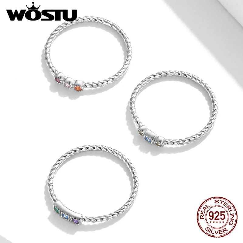 Wostu, новинка, 100% Стерлинговое Серебро 925 пробы, разноцветный CZ Кристалл, камень, проложить палец, кольца, свадебные ювелирные украшения, подарок, FIR720