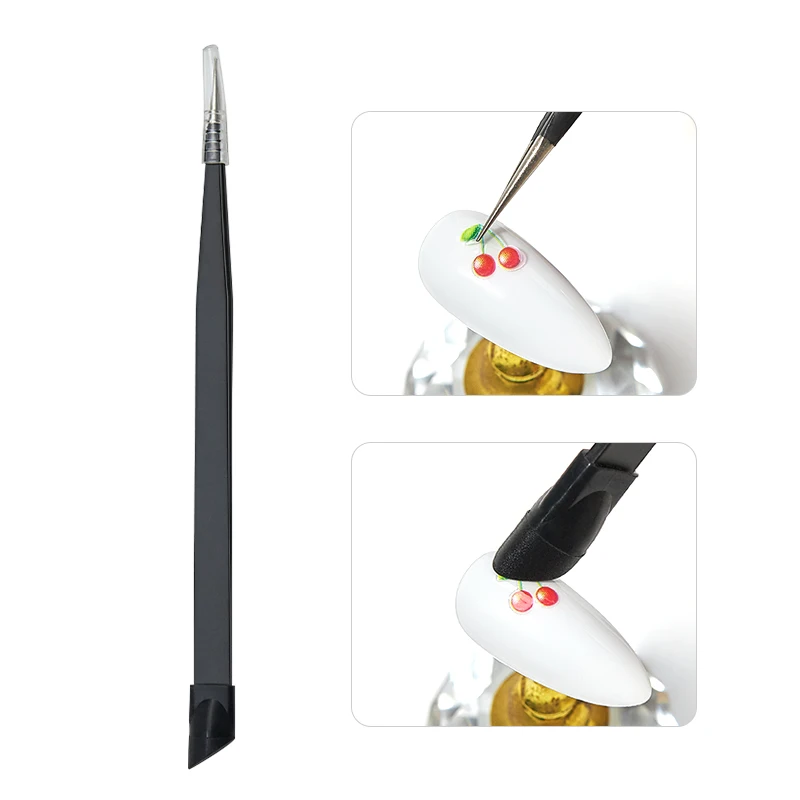 Пинцет для ногтей с силиконовой насадкой, 2 головки, для 3D наклеек, стразы, инструменты для маникюра