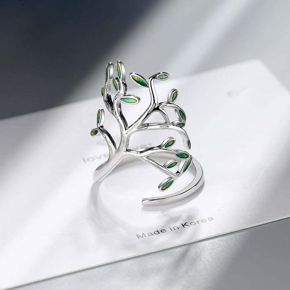 925 пробы Серебряное кольцо с зеленым листом Открытое кольцо Ins Стиль кольцо с листьями для девочек, ювелирное изделие, подарок