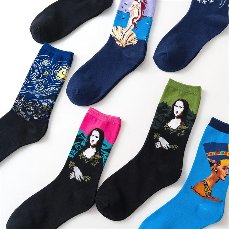 Лидер продаж 1 пара чесаный хлопок разных цветов Ван Гог ретро картина маслом мужские носки, красивые повседневные Модные забавные вечерние платье нескользящих носочков