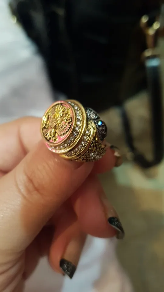 Большое кольцо золотого цвета мужское массивное властительное кольц...