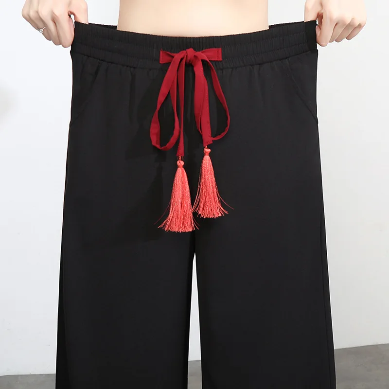 Черные женские брюки кунг-фу, винтажные шифоновые Повседневные брюк...