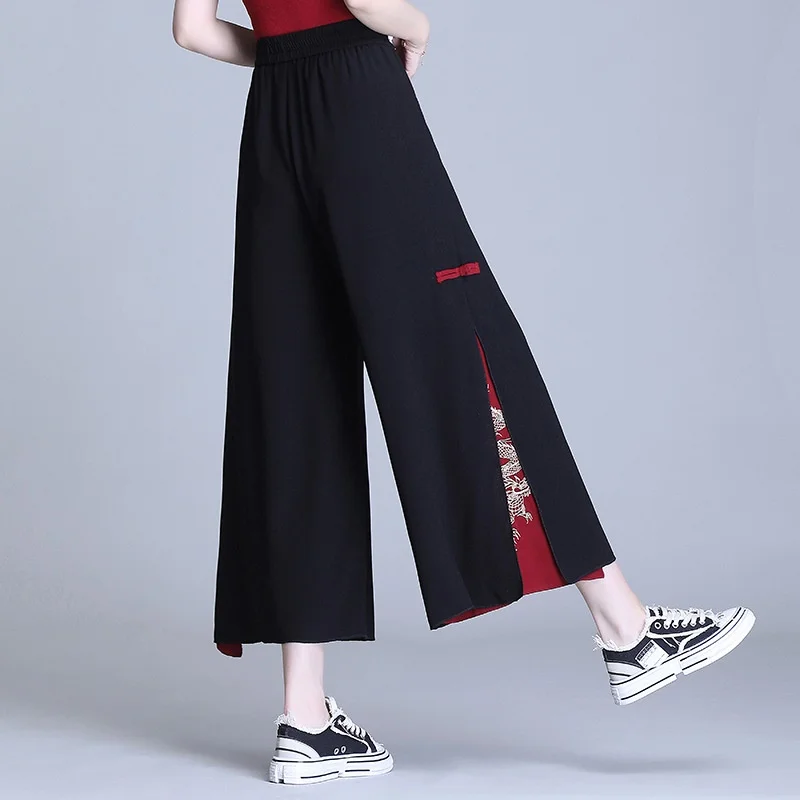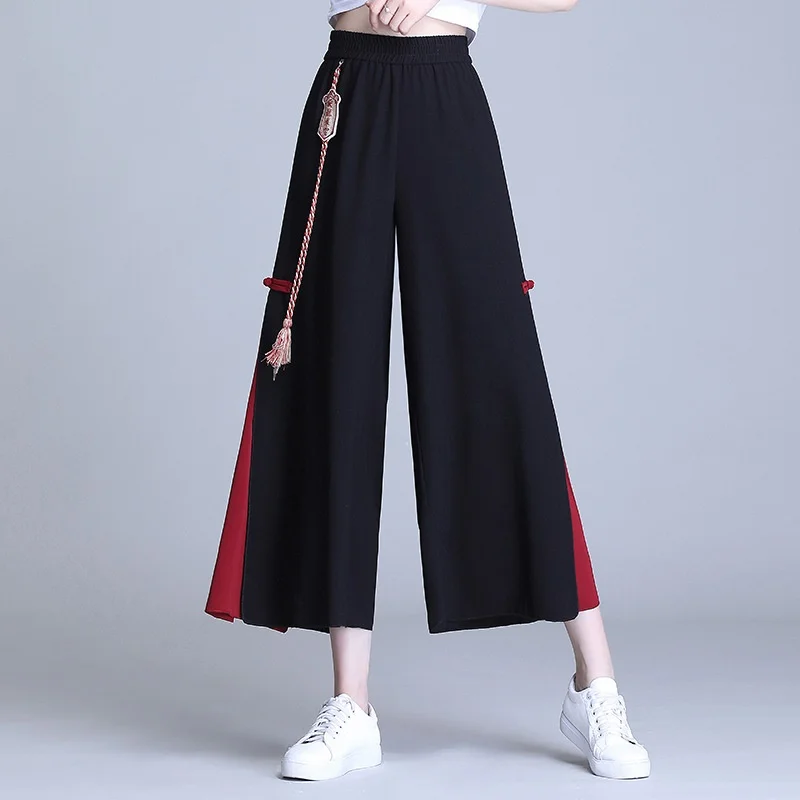 Женские брюки в китайском стиле, Летние черные свободные брюки с широкими штанинами, в стиле хиппи, F3193, 2020