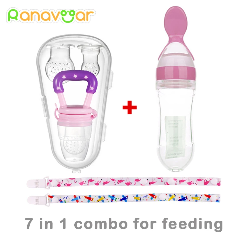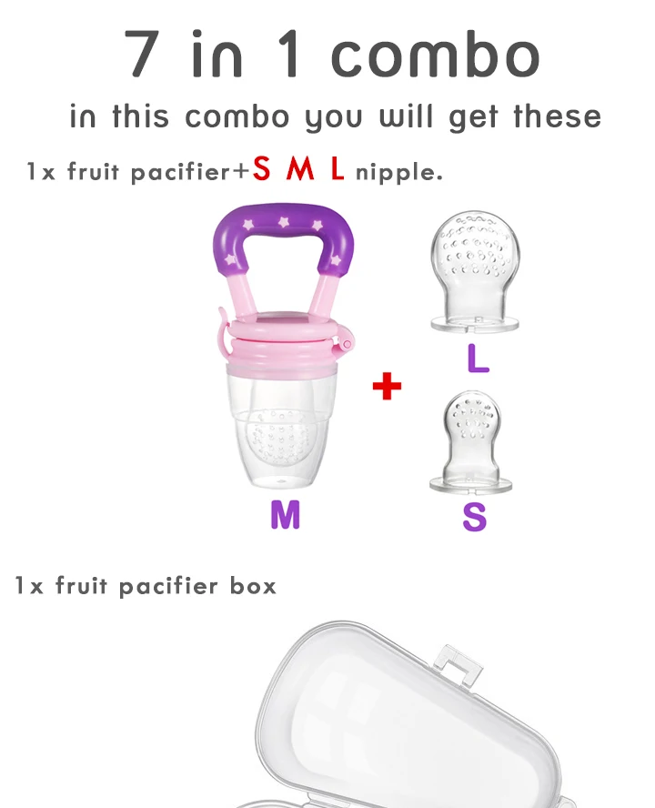 Соска детская 7 в 1, соска для еды, бутылочка для кормления фруктов, молока с ПП коробкой, Ниблер, обучающая жевательной соломинке с ручкой для прорезывания зубов