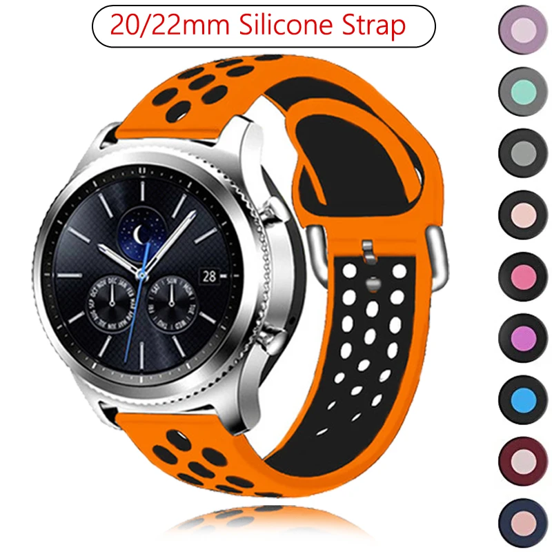 Силиконовый ремешок 20 мм 22 мм для Samsung Galaxy Watch Active 2 Active 3 Gear S2, ремешок для часов, браслет для Huami Amazfit bip