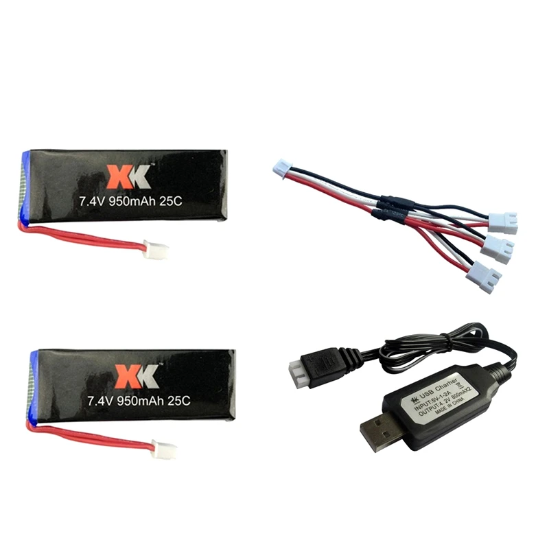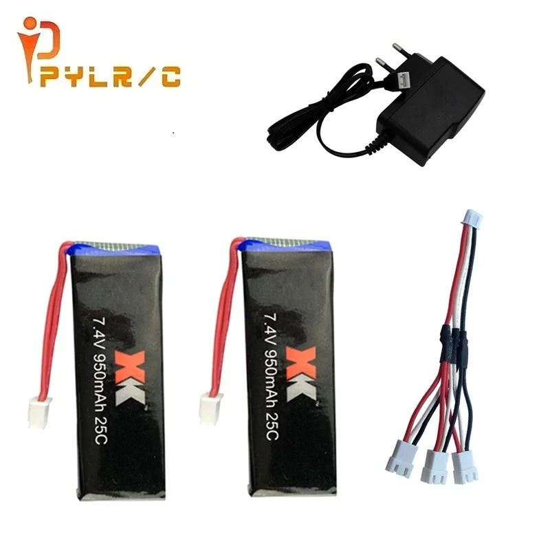 Литий-полимерный аккумулятор и зарядное устройство 7,4 В 950 мАч для WLtoys XK X251, запасные части для радиоуправляемого квадрокоптера, вертолета, перезаряжаемая батарея 7,4 в 25 с