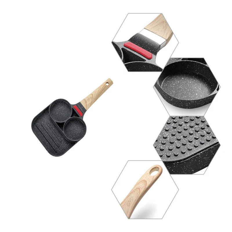 Сковорода с 2 отверстиями, 4 отверстиями для жарки яиц, бургеров, антипригарная блинница с деревянной ручкой, подходит для газовой плиты и индукционной плиты
