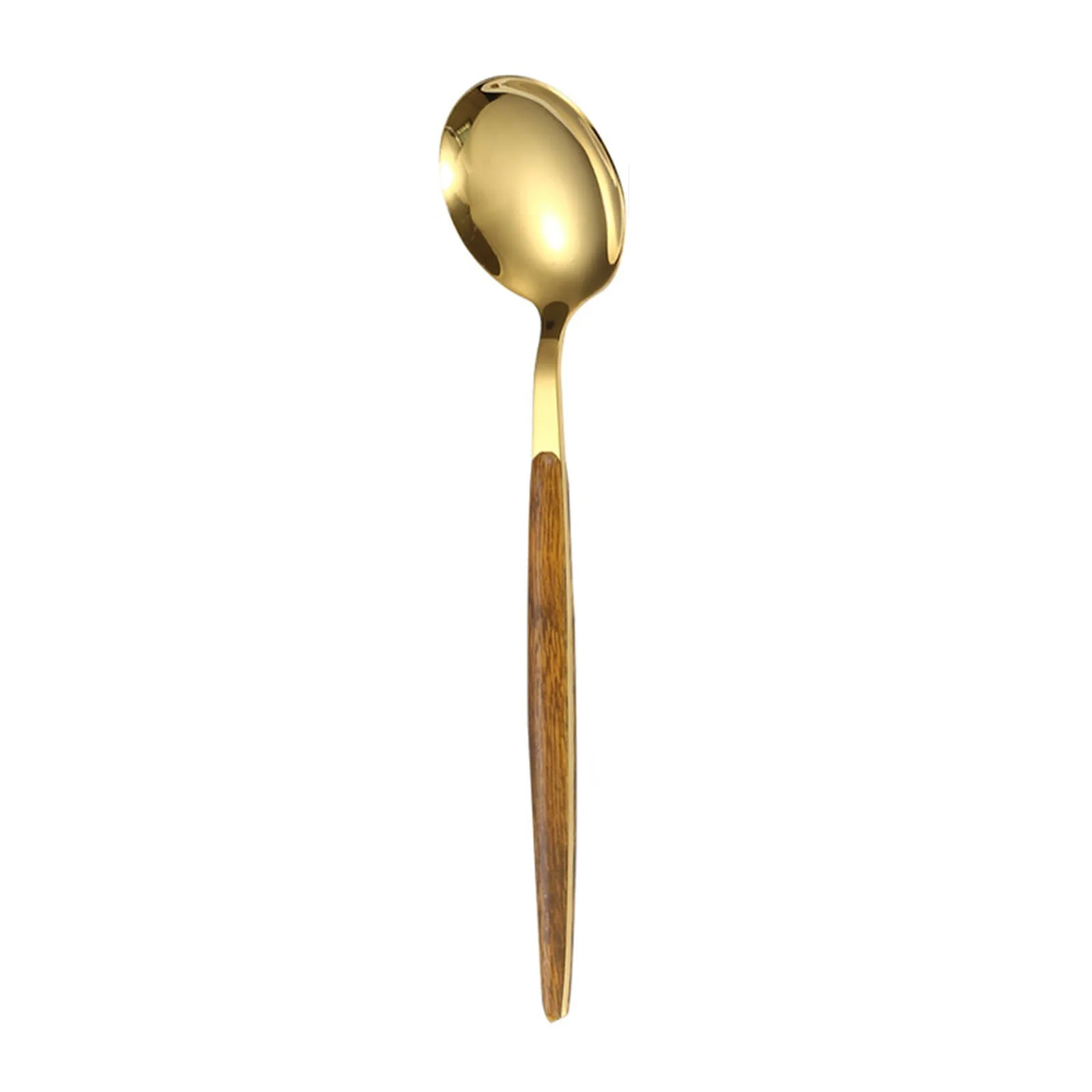 Столовые приборы в западном стиле из нержавеющей стали с отделкой под дерево