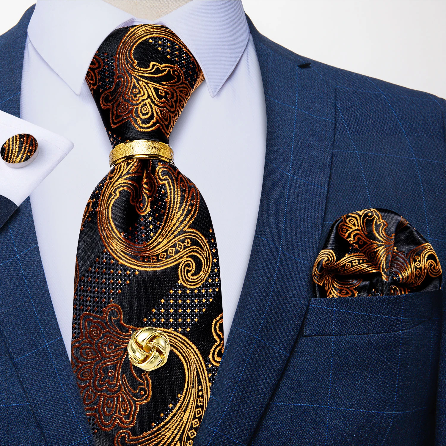 DiBanGu дизайнерский мужской галстук с зеленым узором Пейсли Полосатый Свадебный галстук для мужчин кольцо Hanky запонки шелковый галстук Набор для деловых вечеринок