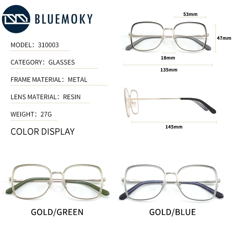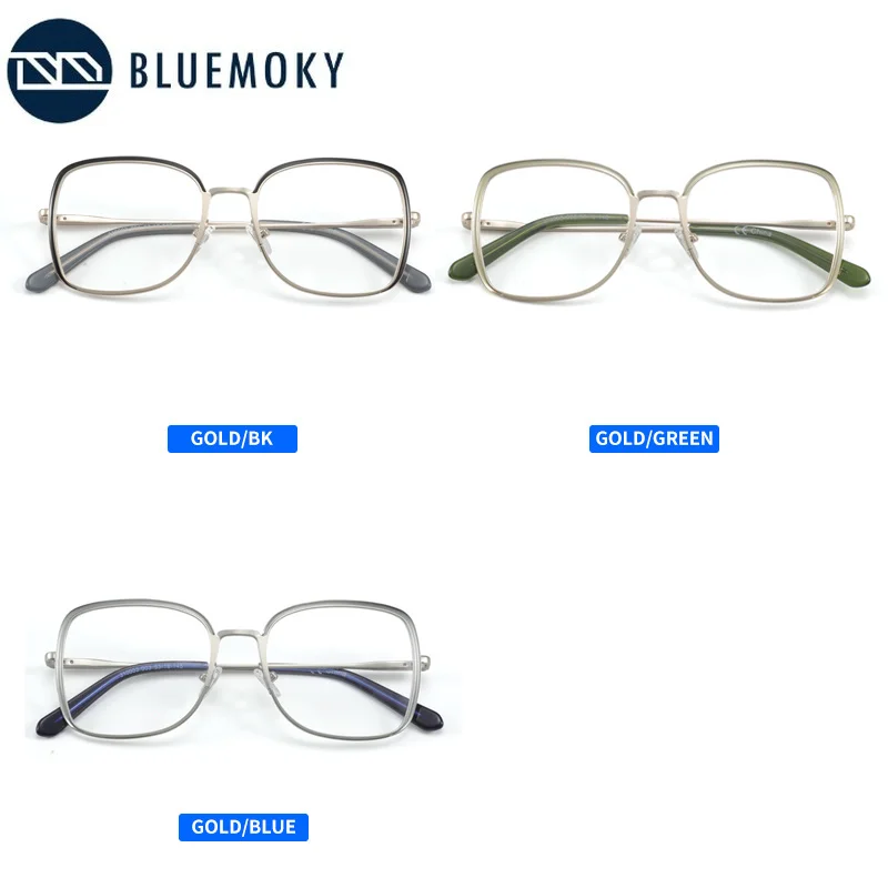 Женские оптические очки BLUEMOKY, в металлической оправе, с линзами с защитой от сисветильник, квадратные компьютерные очки для коррекции миопии