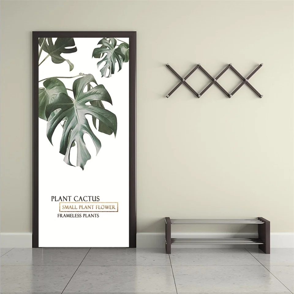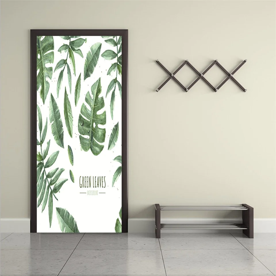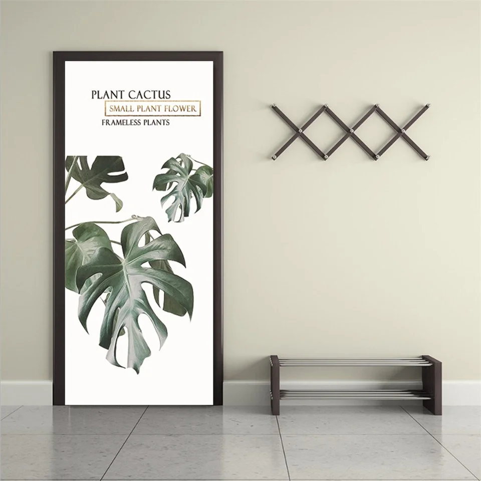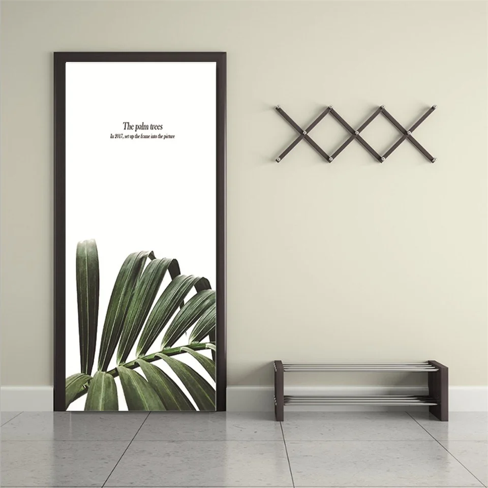 Простая наклейка на дверь с зелеными растениями для украшения ванной комнаты, спальни, самоклеящиеся обои, наклейка на стену, Индивидуальный размер, Постер для домашнего декора